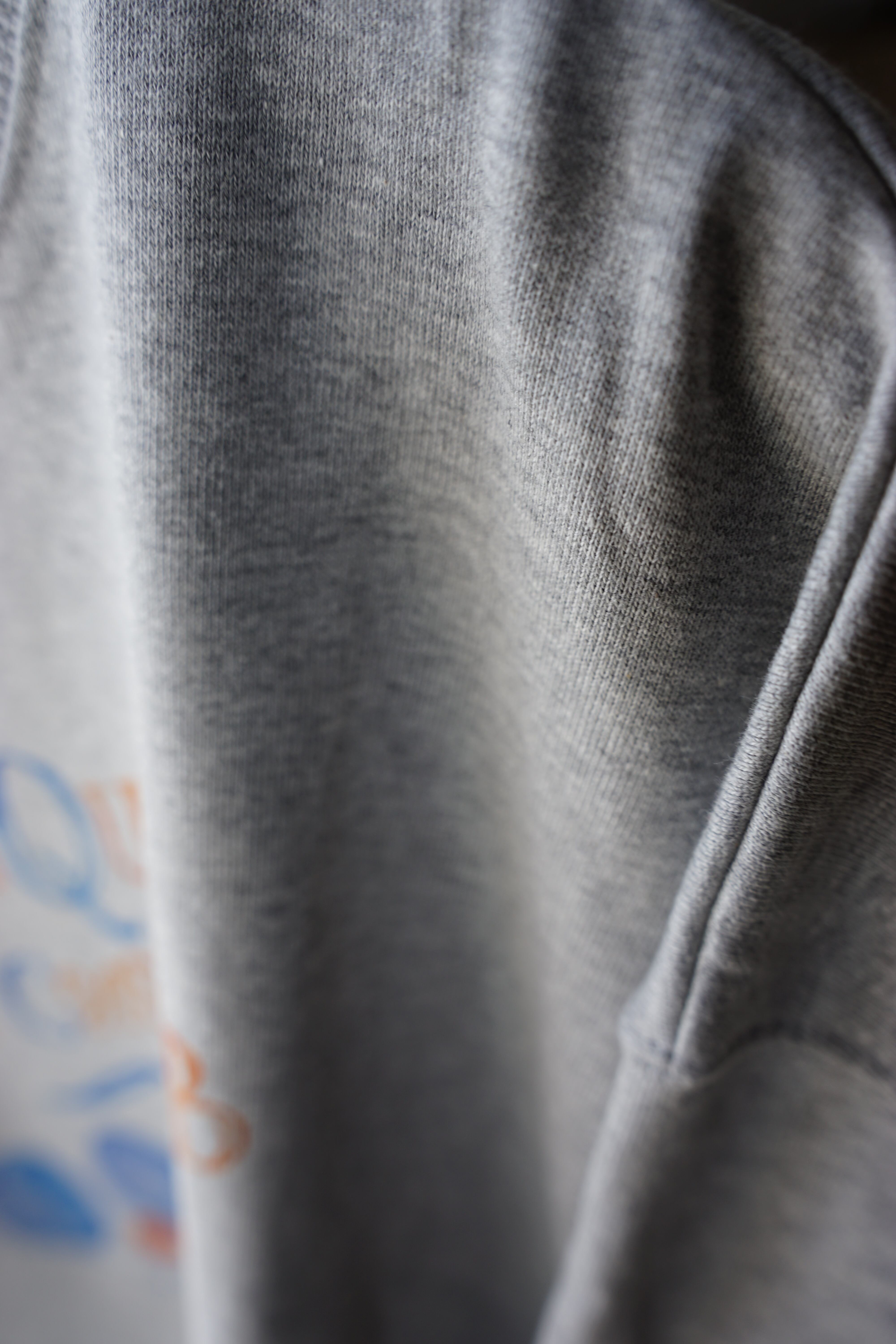 ボディには杢グレーの柔らかなスウェット生地を採用。