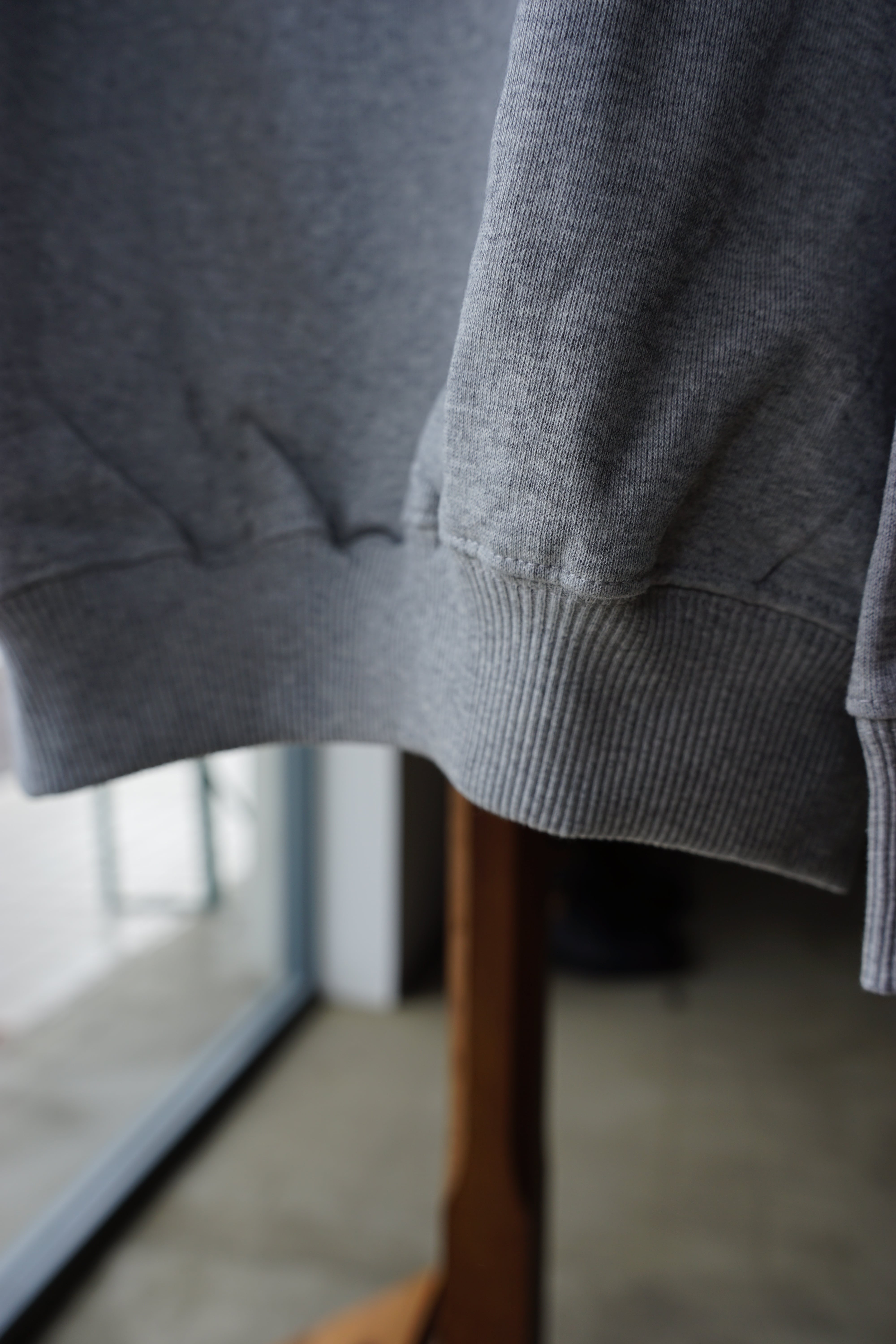 ボディには、杢グレーの柔らかなスウェット生地を採用。