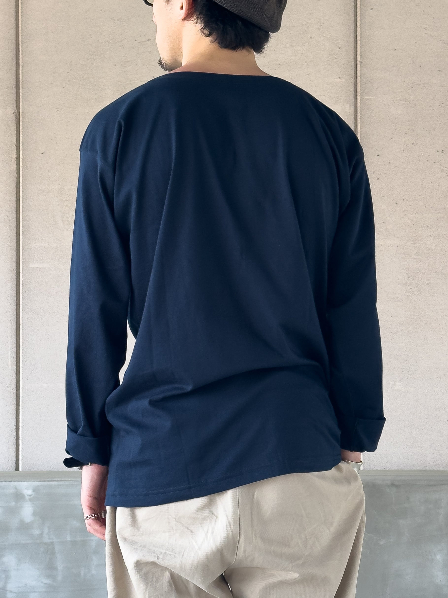 シルエットは程よいゆとりがあり、IV(M相当)からVI(XL相当)までのサイズ展開で、ご自身の好みのバランスをお選びいただけます。