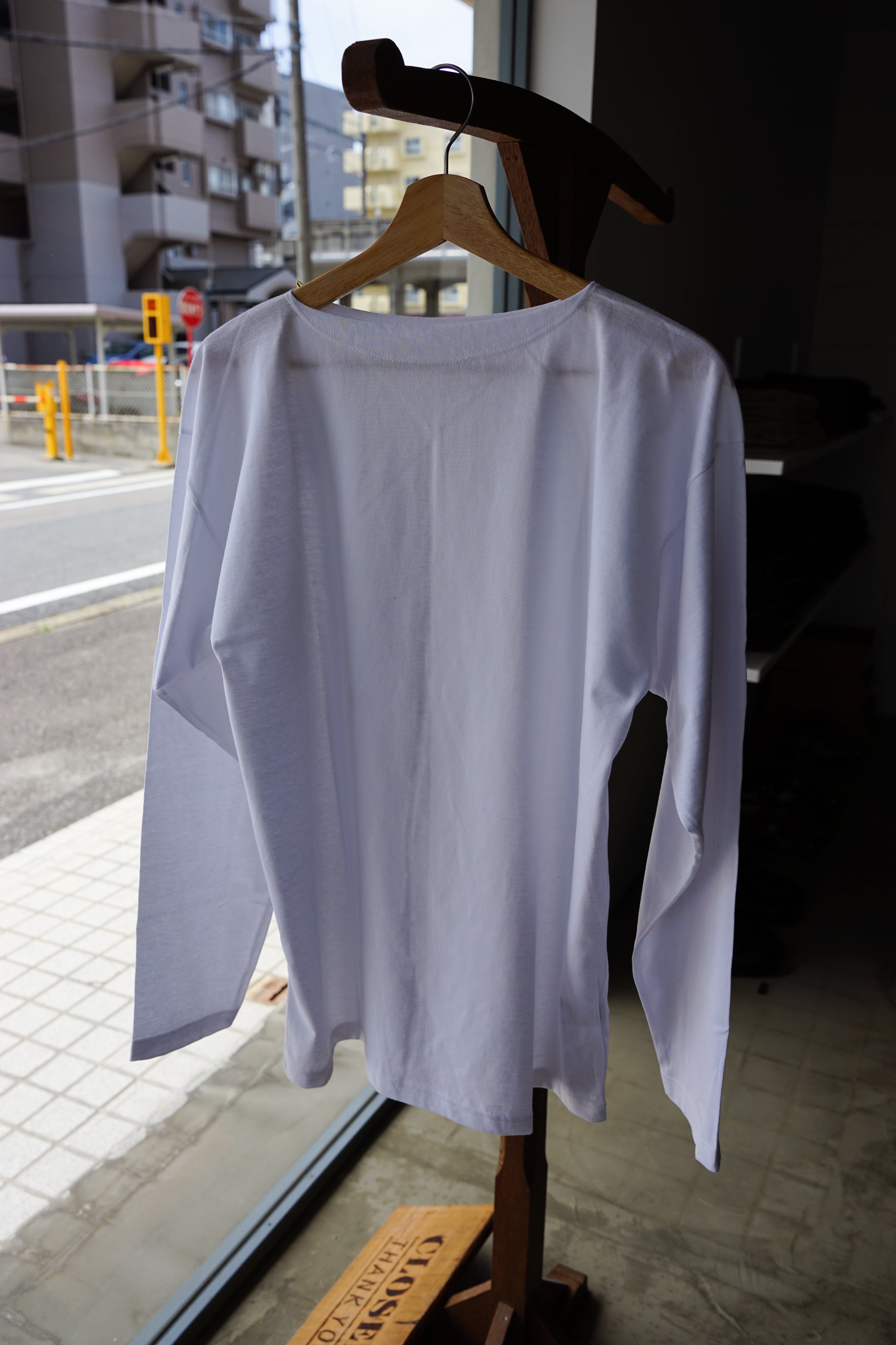 このモデル最大の特徴は、ボートネックらしい横に開いた美しい首元のラインです。