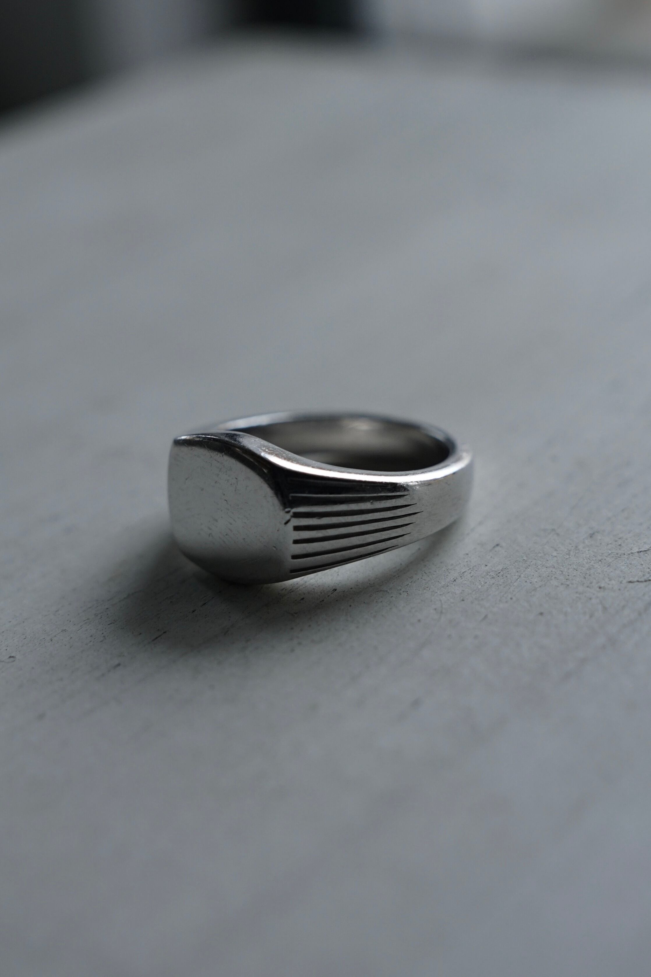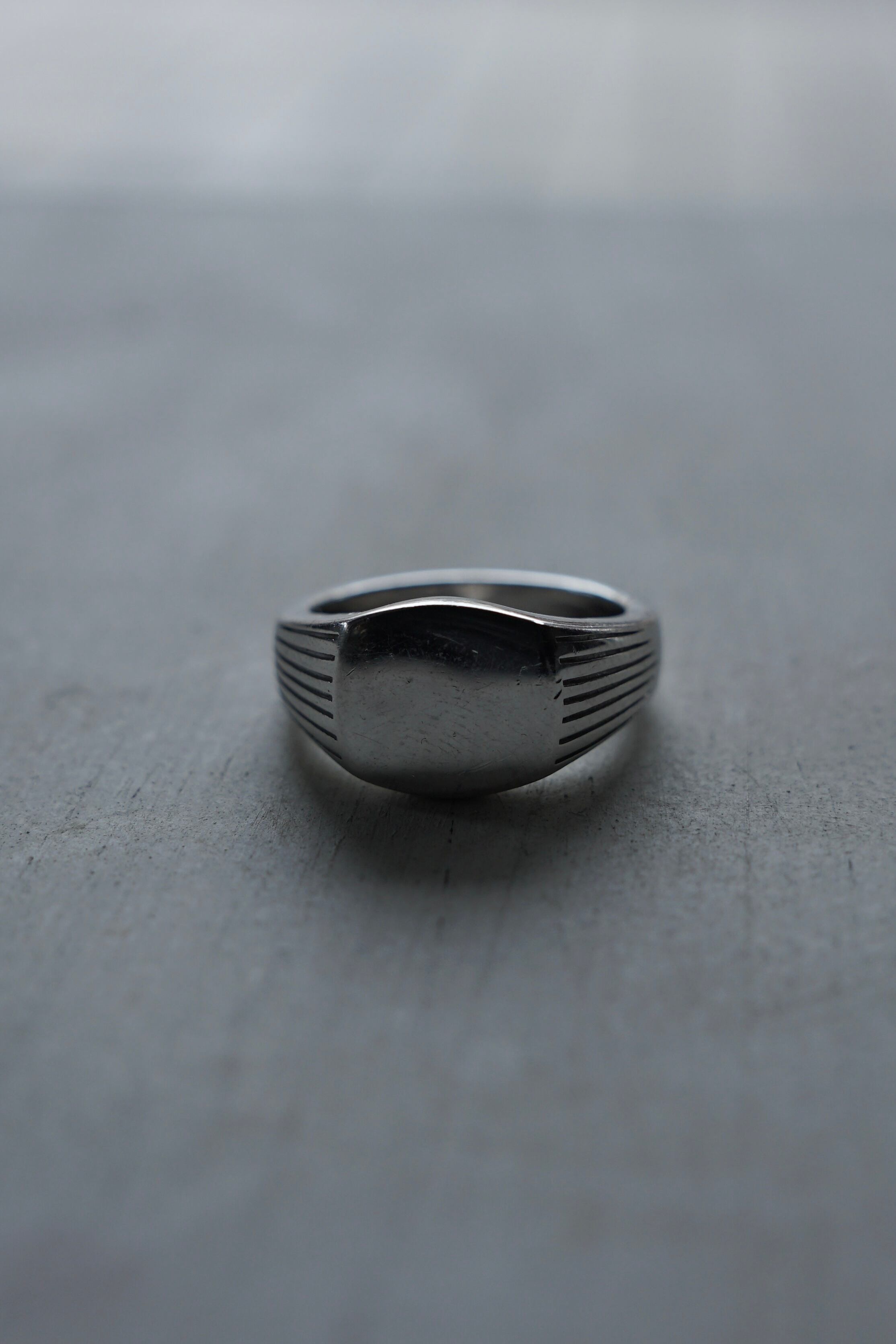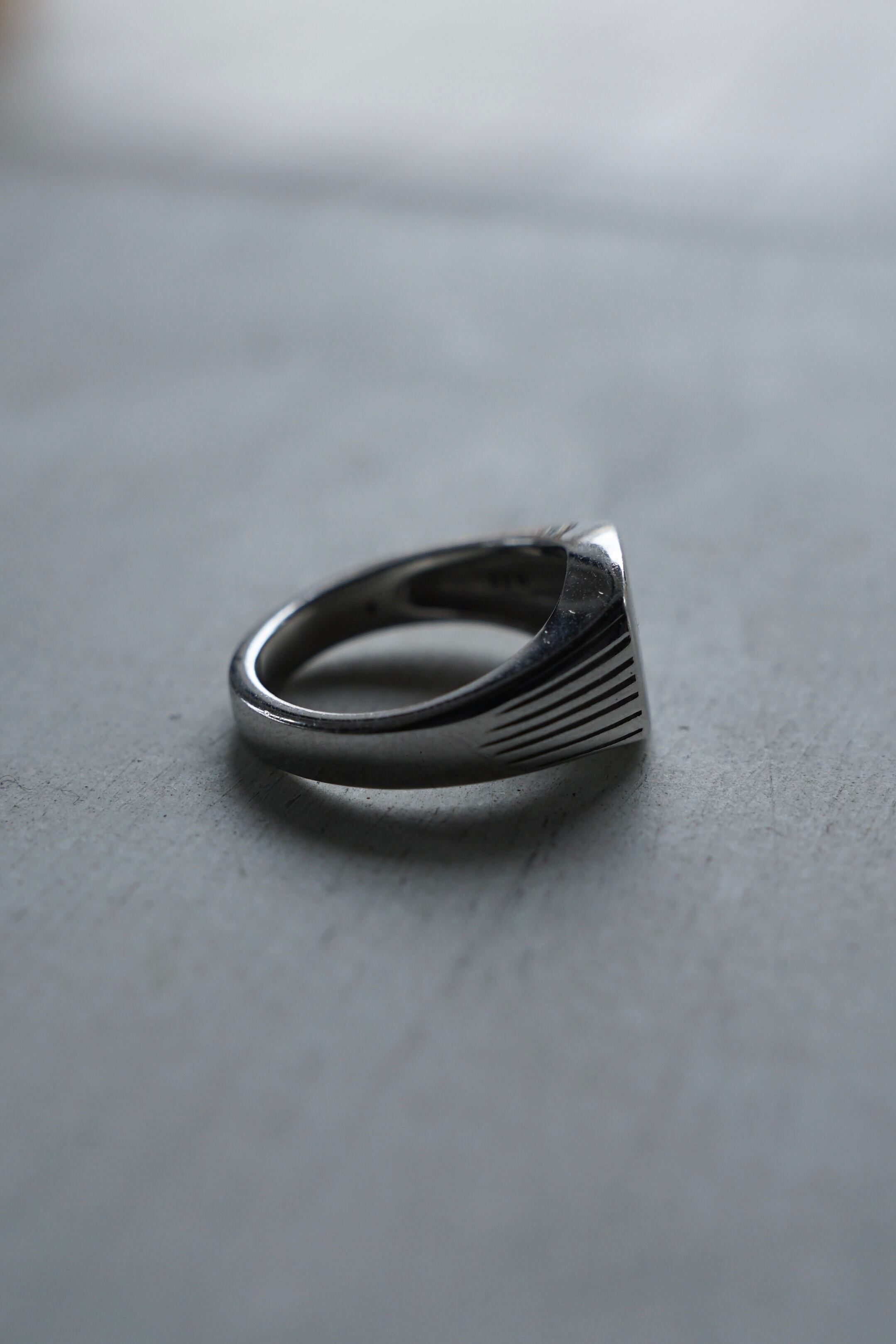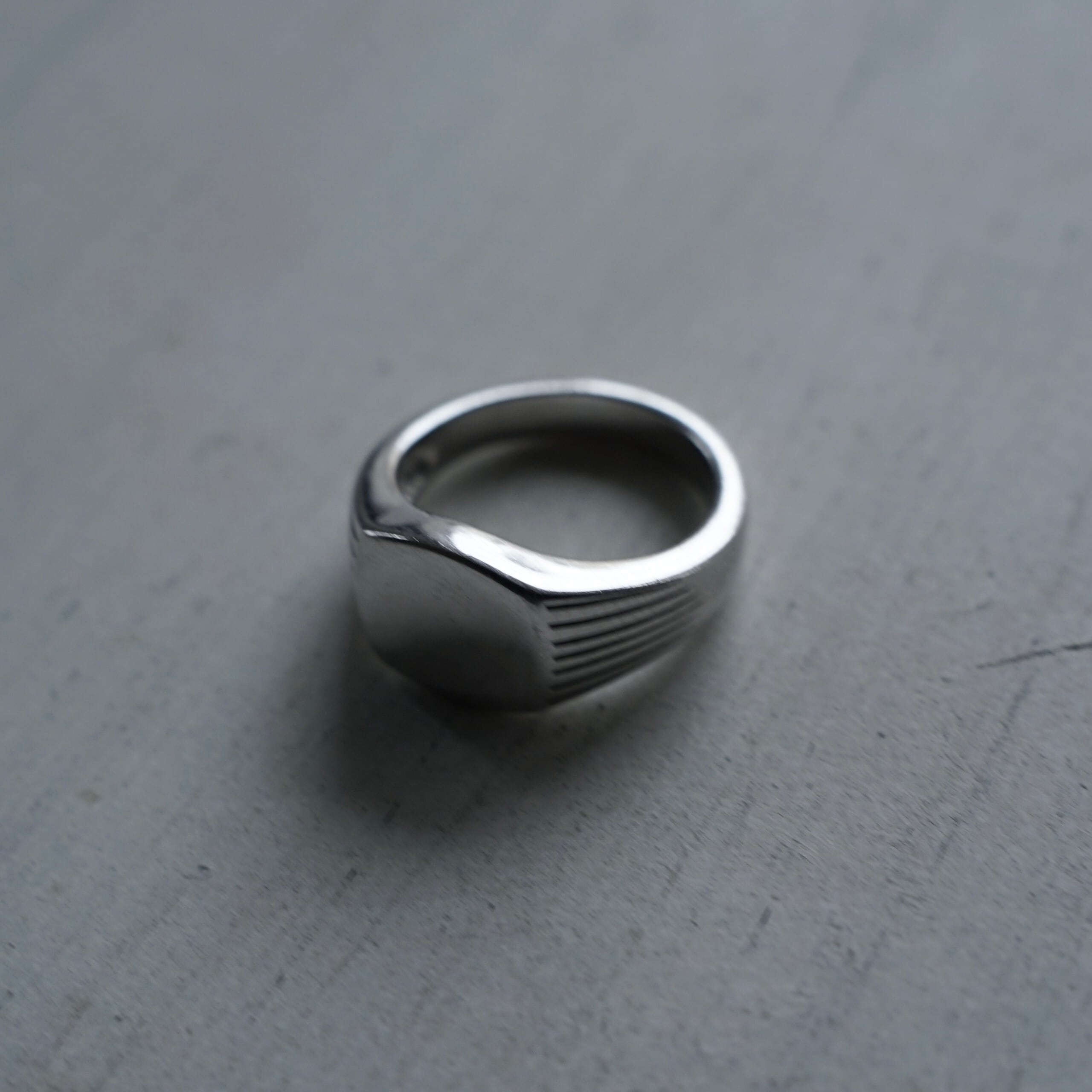 この繊細なラインが光を程よく分散させ、プレーンなリングにはない奥行きのある表情を生み出しています。