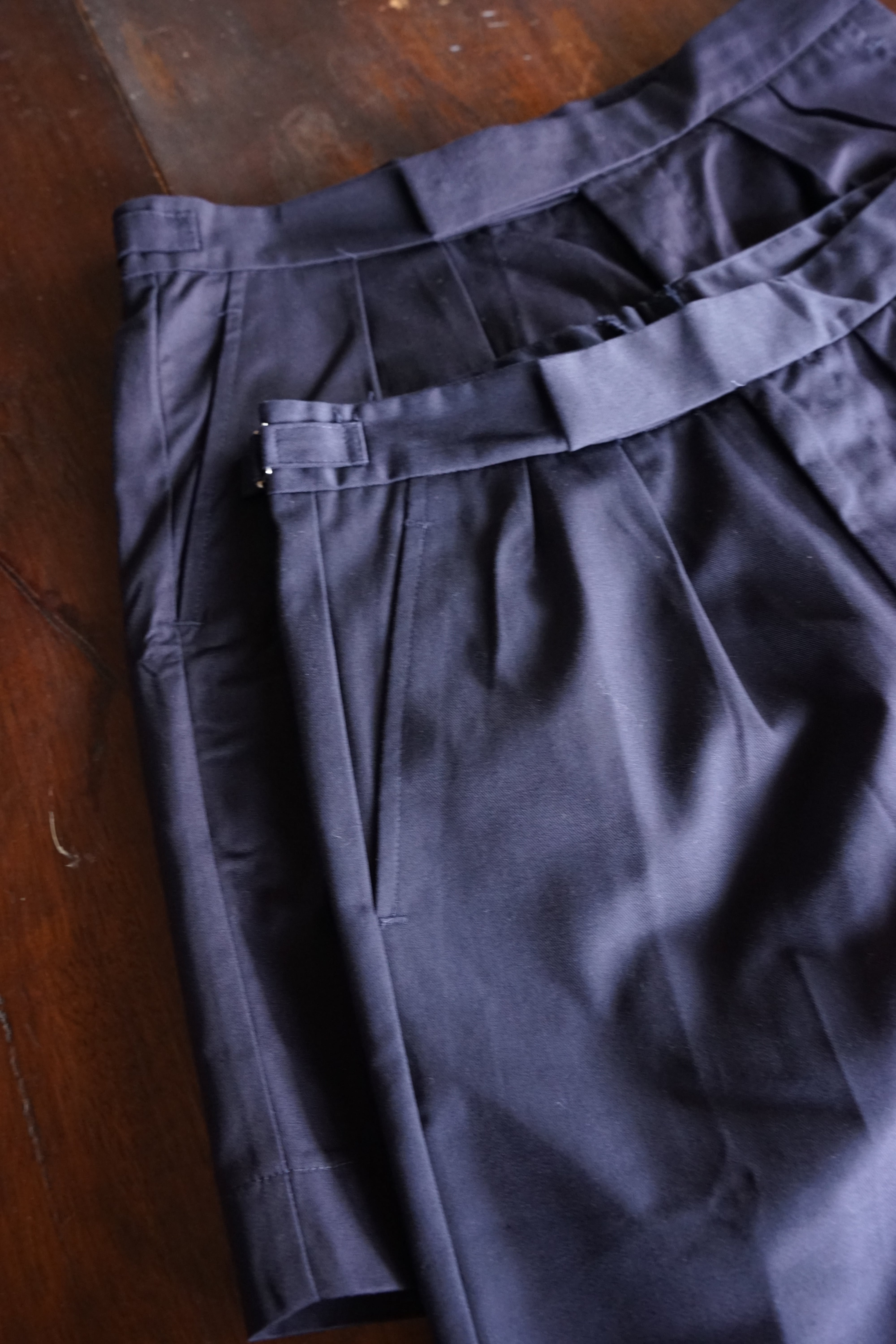 世界屈指の歴史を持つイギリス海軍において、過酷な船上や基地での作業用として支給されていたこのショーツには、軍用ならではの実用性と、英国らしい端正な美意識が共存しています。