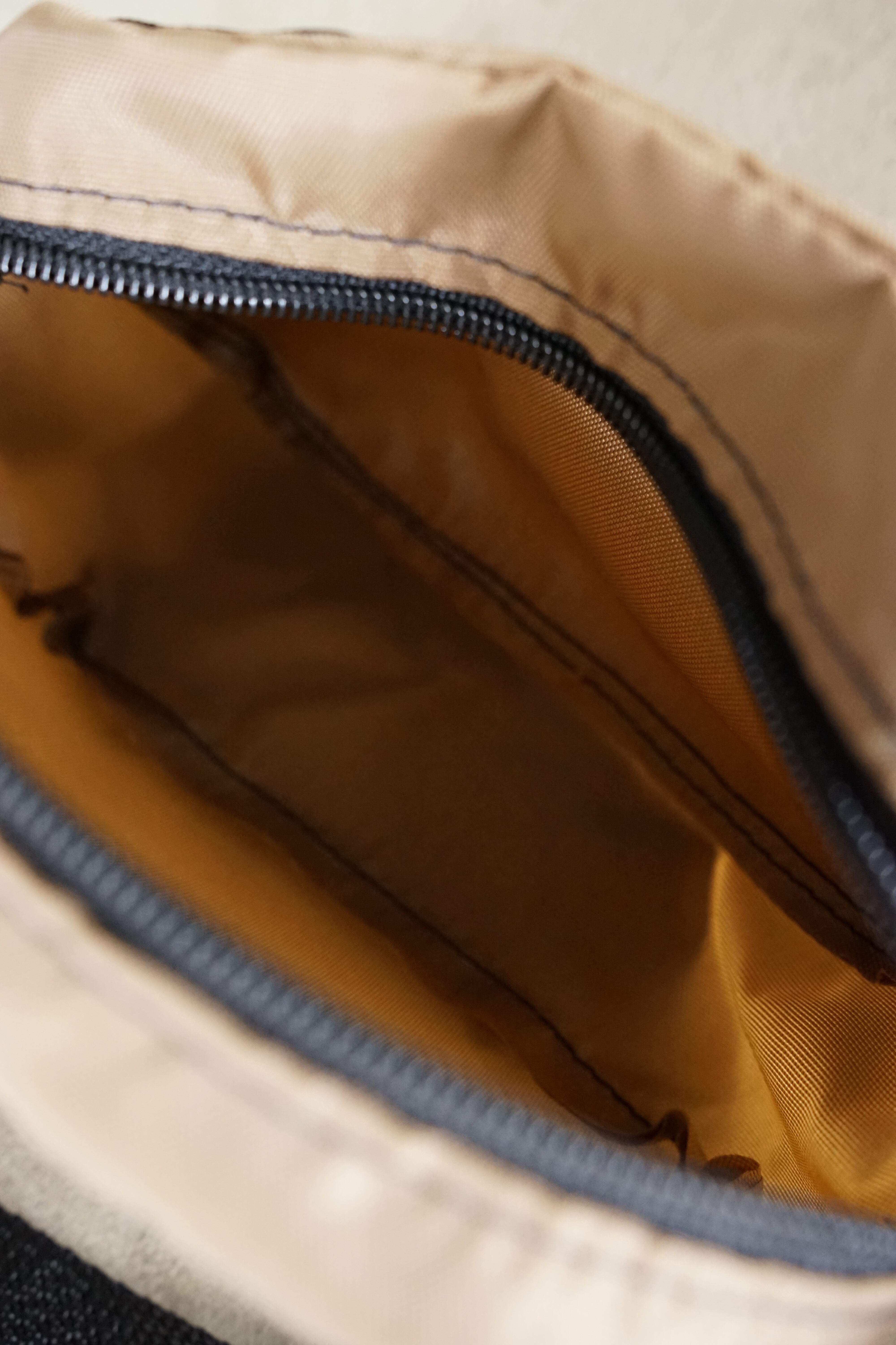 堅牢なナイロン生地は使い込むほどに持ち主の手に馴染み、ジッパーの引き手一つをとっても、当時のプロダクトらしい安心感のある作りが魅力です。
