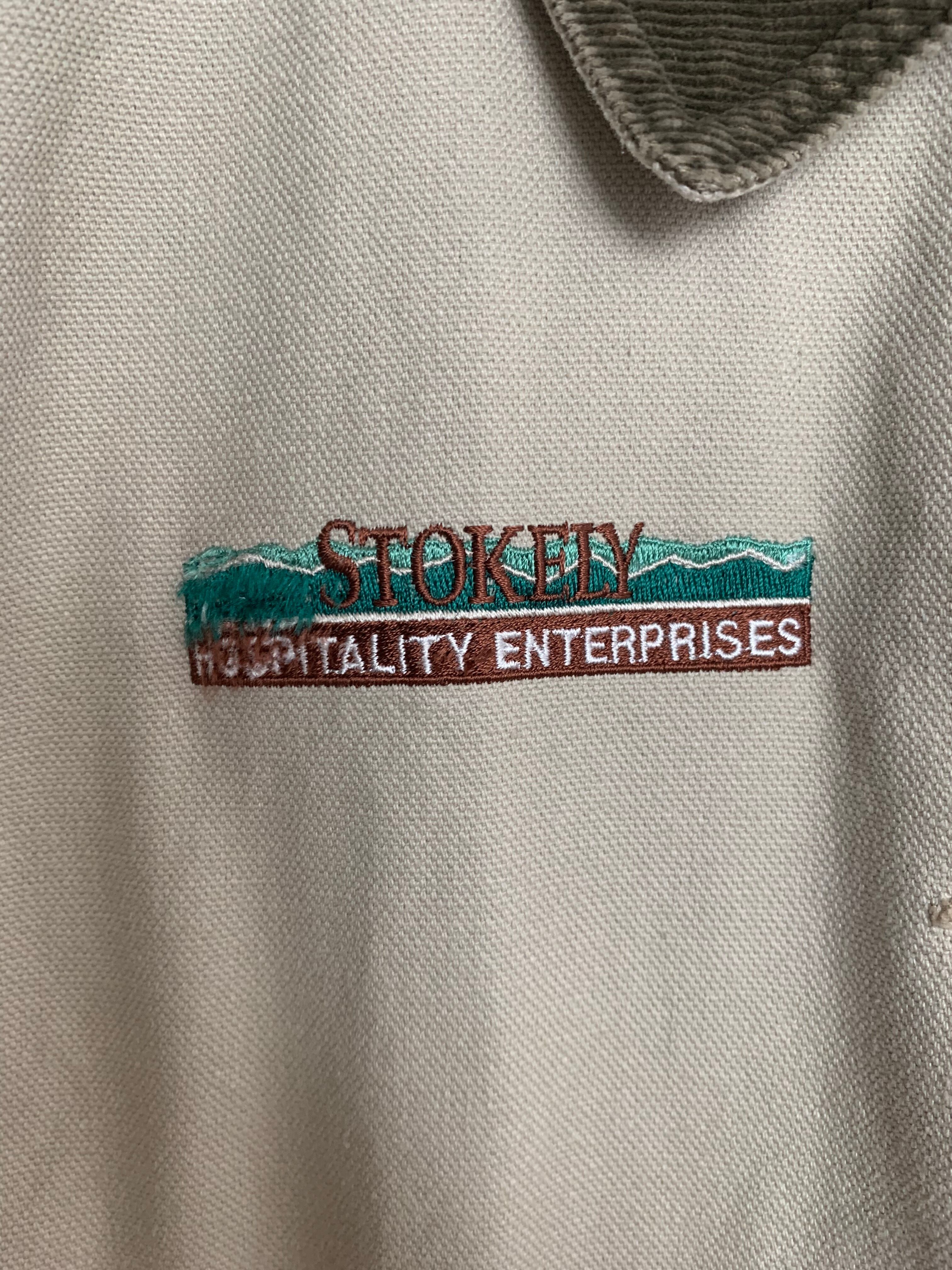 まず胸の刺繍なのですが、STOKLEY hospitality enterprisesというアメリカの飲食店のロゴのようです。この形のハンティングジャケットはあってもこの刺繍入りとなるとかなり珍しいと思います。