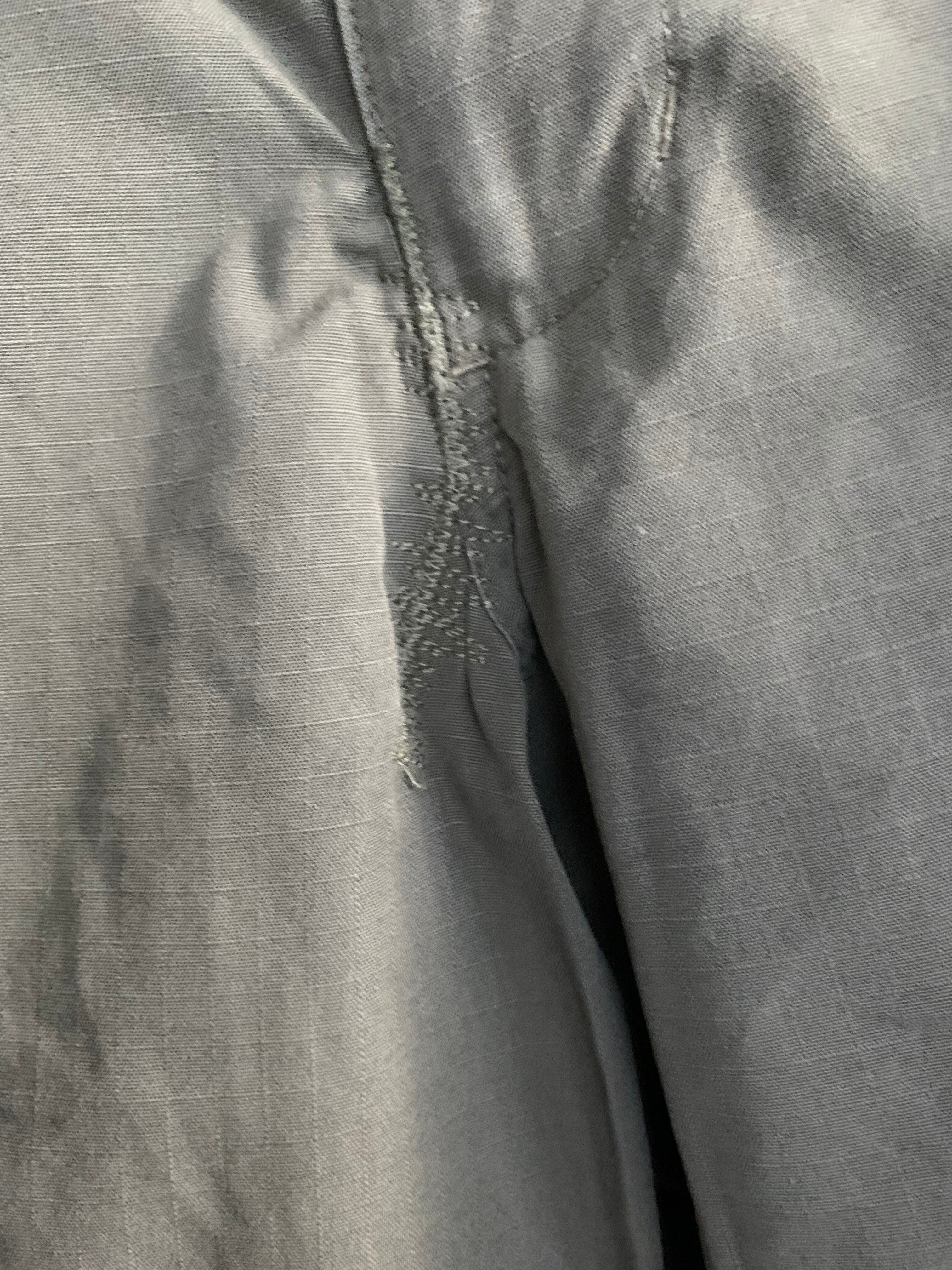 生地は少し薄めのリップストップ。コットンナイロンなので、程よくシャリ感がありつつコットンの柔らかさがあるので使いやすい生地かと思います。アメリカ軍のアイテムではリップストップのものをよくみる気がするのですが、ヨーロッパの軍モノでリップストップってあんまりみない気がするので、何気に結構珍しいのかなと思います。
