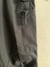 個人的に1番好きなポイントは裾の部分です。裾だけ耐摩耗性ナイロンに切り替わっていて、強度が上げられています。それだけでなく2段階の調整+ジップクロージャー構造になっていて、裾を絞ってテーパードを楽しむもよし、開けてストレートシルエットを楽しむもよし、見た目だけでなく機能性も最高です。