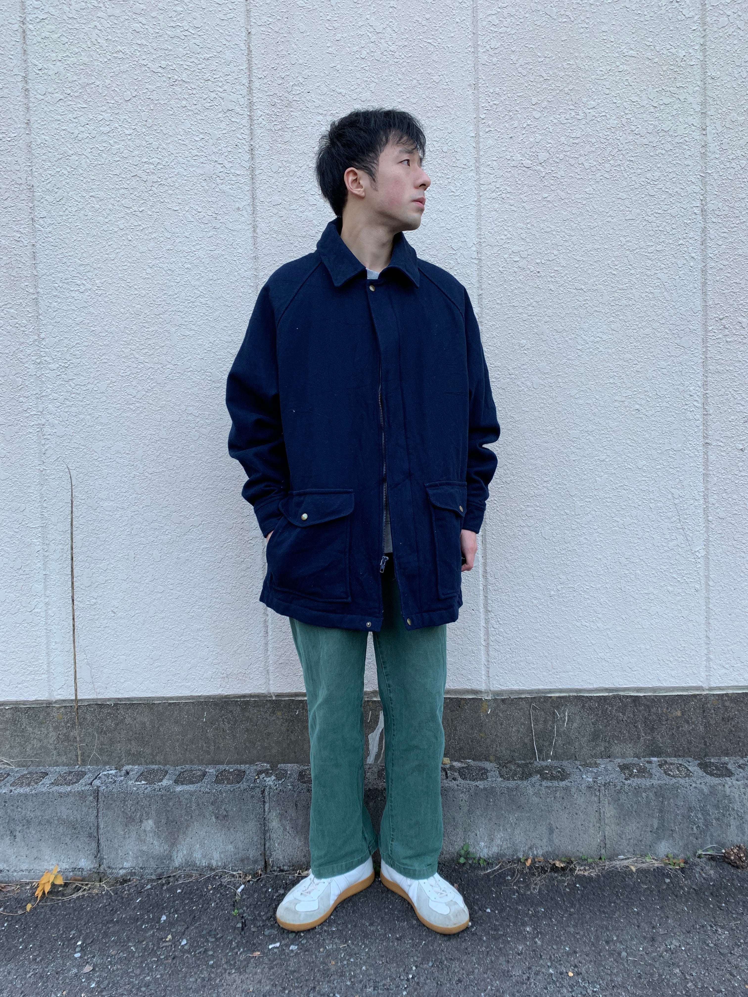 そして全体のシルエットはステンカラーコートを短くしたような感じで、雰囲気はバブアーのソルウェイジッパーっぽい形かなと。ヨーロッパ風でもアメカジっぽいスタイリングにも馴染む使いやすい形と生地かなと思います。