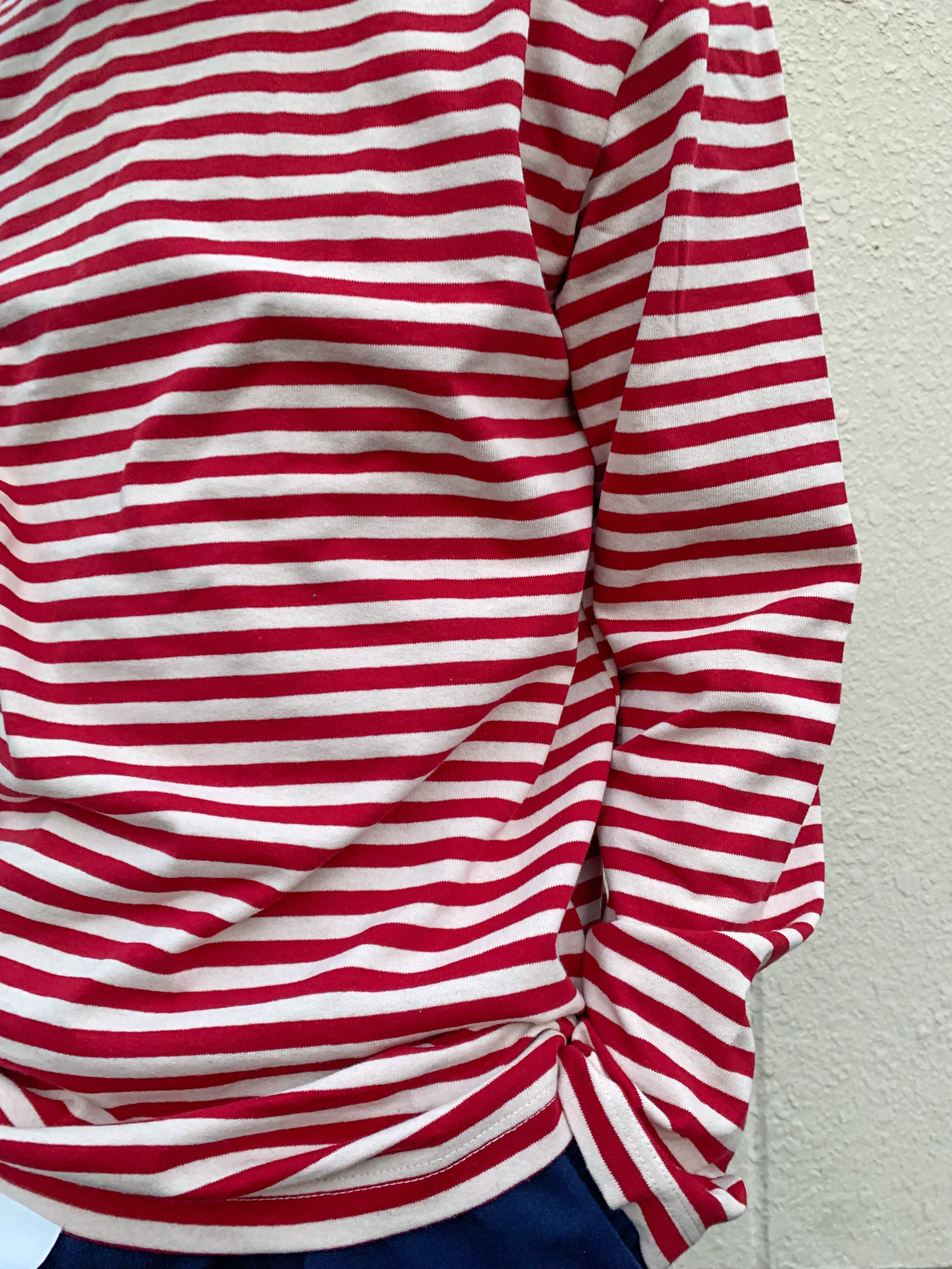 このボーダーの太さ、間隔が大きすぎず小さすぎずのちょうどいいバランスです。これぐらいのボーダーが一番取り入れやすいのではないかと思います。