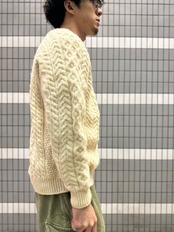 こちらCarraig Donnのフィッシャーマンセーターになります。生産国は本場の北欧、アイルラインドになります。