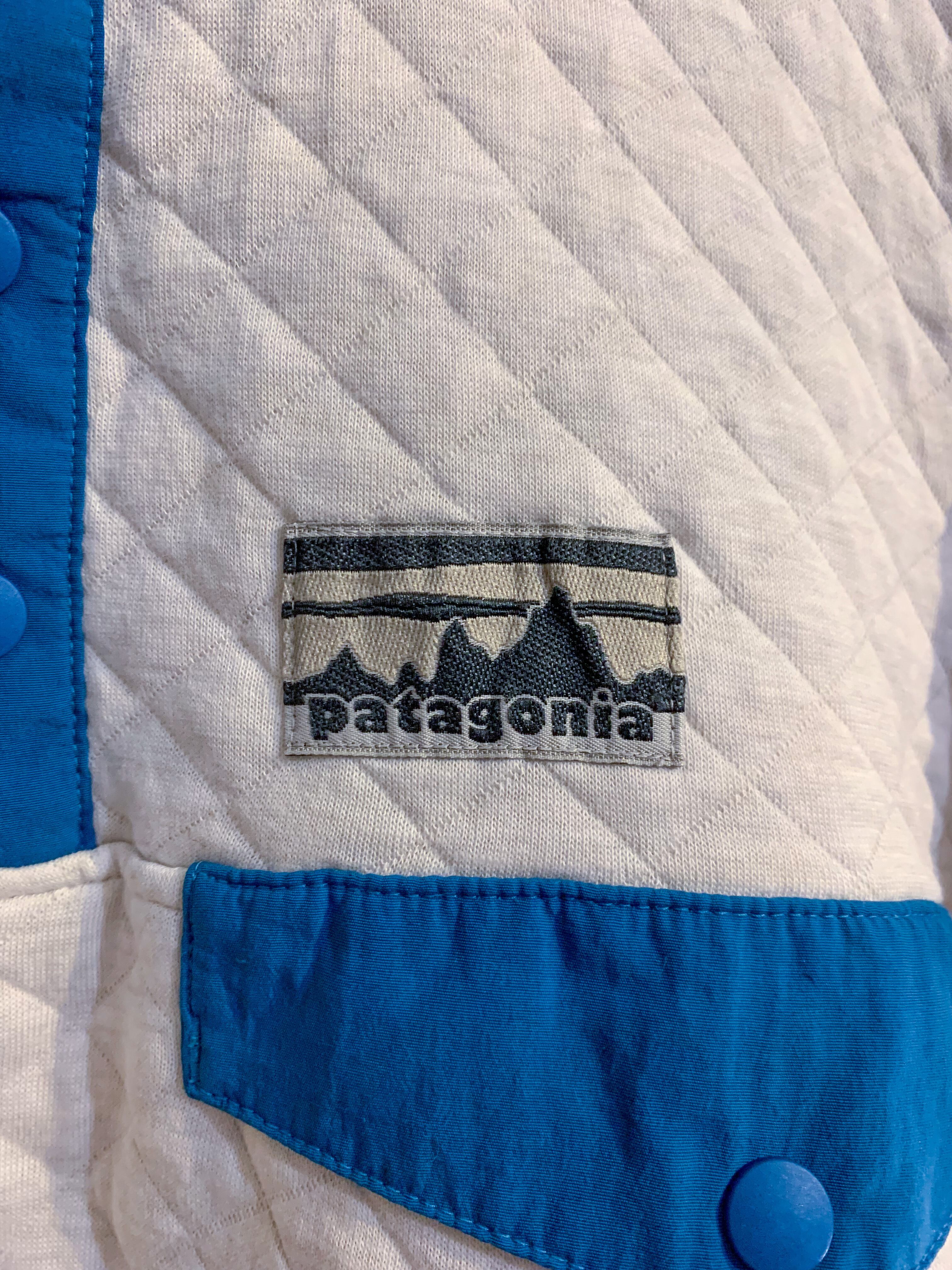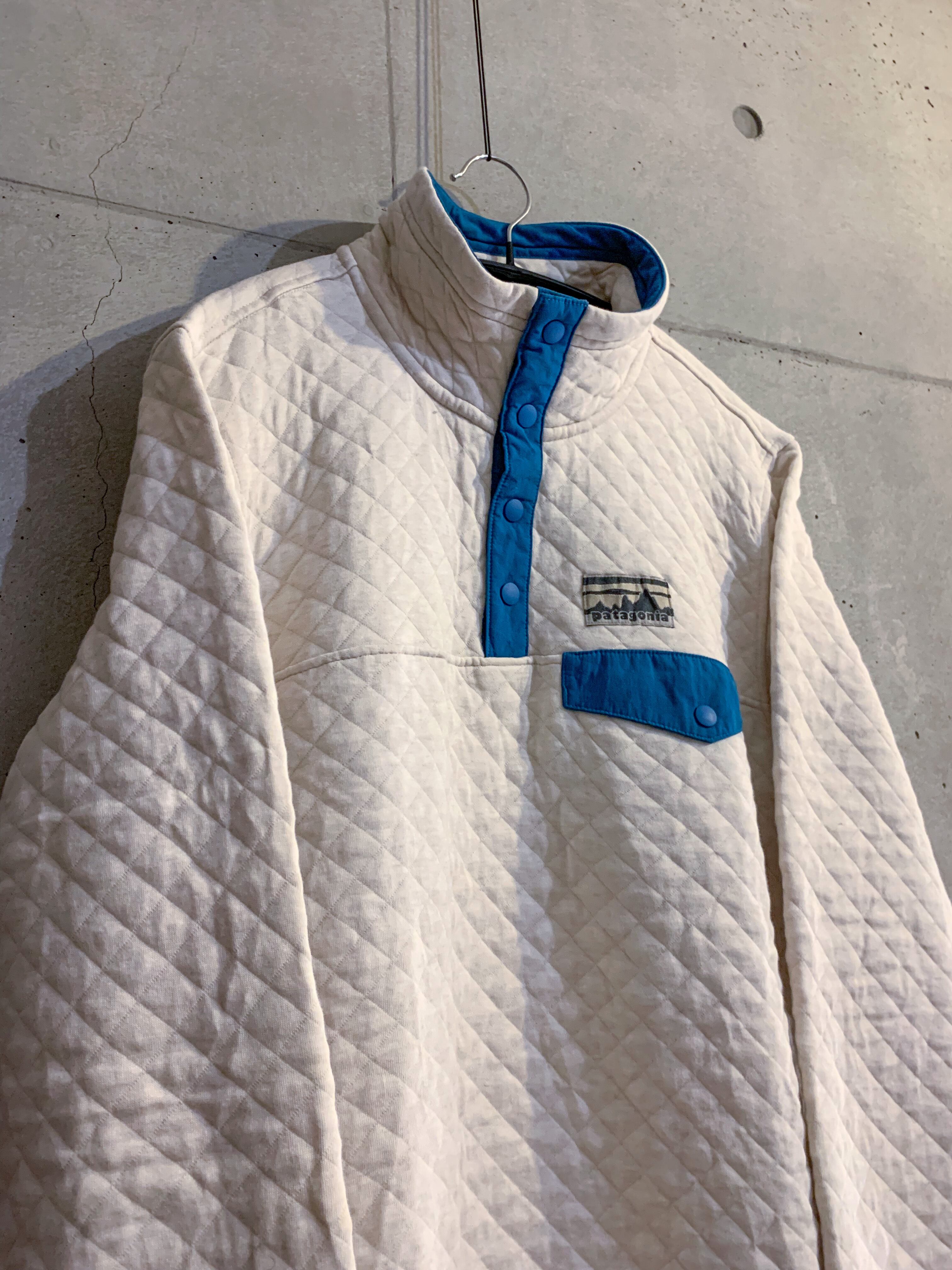 Patagonia Quilting Half Button knit off-white×Blue
