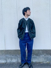 色味も普段使いしやすいネイビーで、本当にどんなジャンルにも取り入れやすい素晴らしいパンツです。こういった特別デザインが効いている訳ではないスタンダードなパンツこそ、気づけば登場頻度の高いワードローブになっていくと思います。