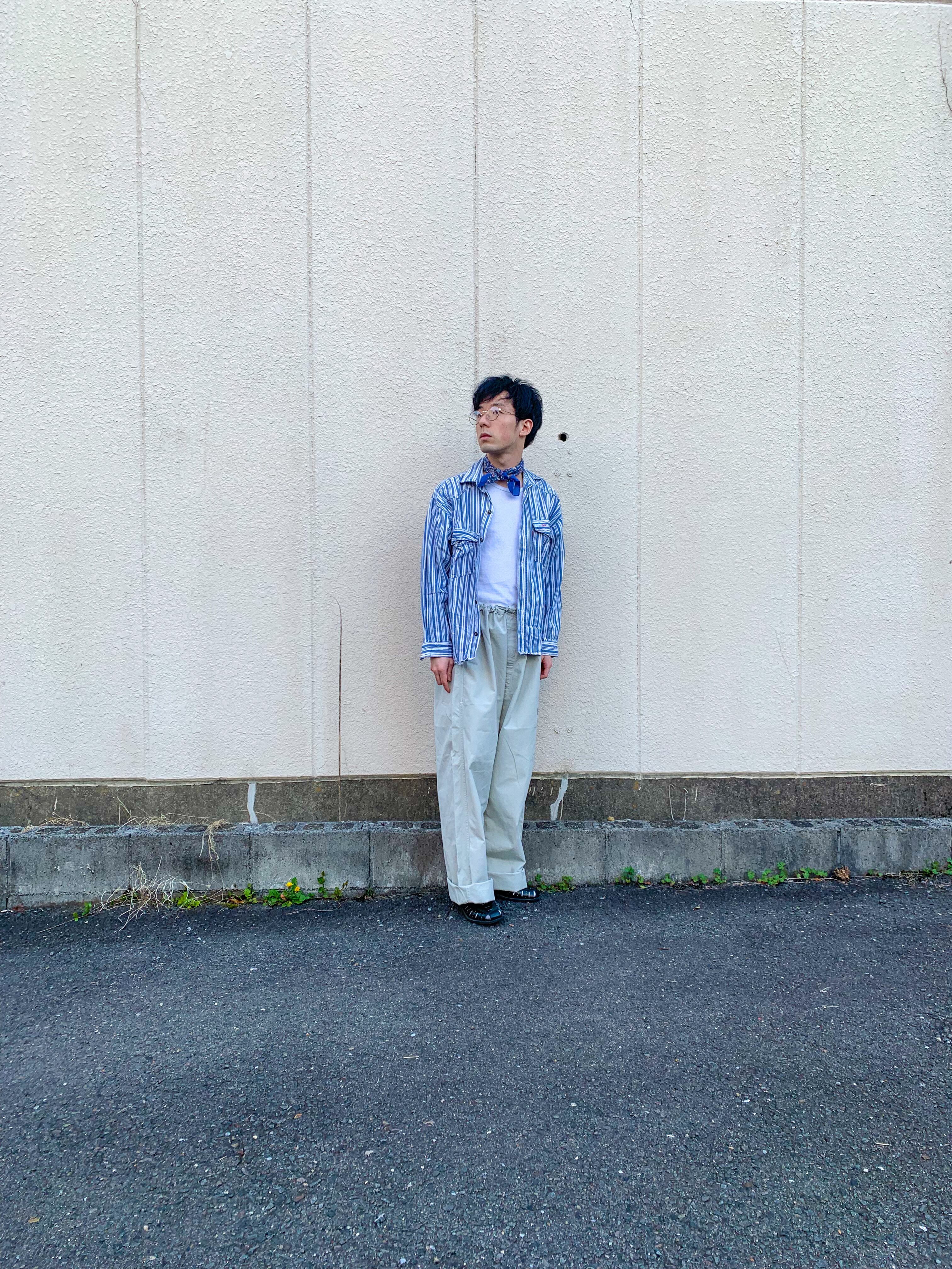 形も結構面白くて、身幅の割に結構着丈が短いボックスシルエットになっています。アウターやジャケットでボックスのものはぼちぼちみるのですが、シャツでこの形のものは結構珍しかったりします。前を閉めるのもいいと思いますが、サラッと羽織るのが様になる形なのかと。