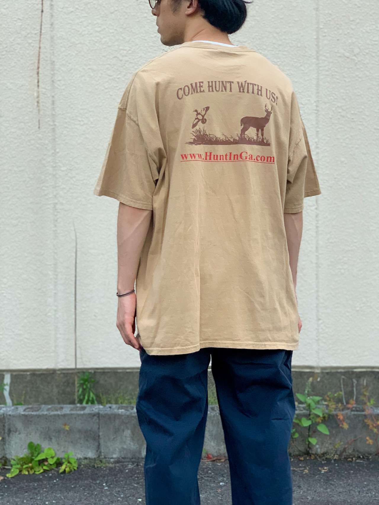 個人的にグッときたのはバックプリントのデザイン。大きく"COME HUNT WITH US!"と書いてありますが、雰囲気的には「一狩り行こうぜ!」みたいなことだと思います(某有名ハンティングアクションゲームのキャッチコピー的な)。日本には狩猟区と言われてもあまり馴染みがないので想像がしづらいかも知れませんが、こうしたポップなセリフが使われている辺り、海外ではハンティングというものはかなり大衆化しているスポーツなのだと思います。