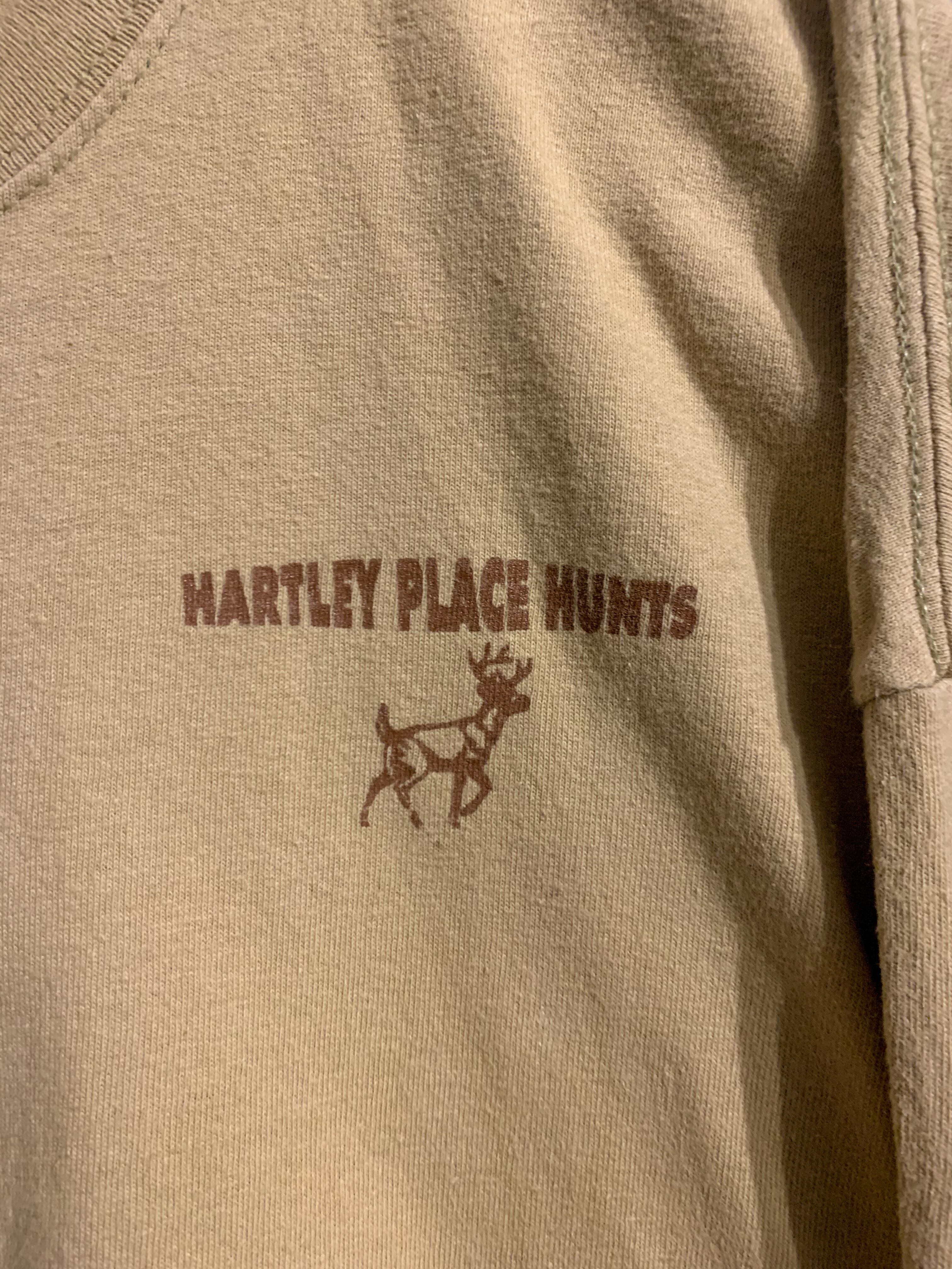 今回のデザインはアメリカのハートリー狩猟区のロゴが入ったもの。フロントとバックプリントに鹿がデザインされていますが、この狩猟区は鹿のハンティングで有名な場所なんだと思われます。Googleで画像検索しても一枚七面鳥を捕らえた写真があるぐらいで、それ以外は全て鹿の写真でした。