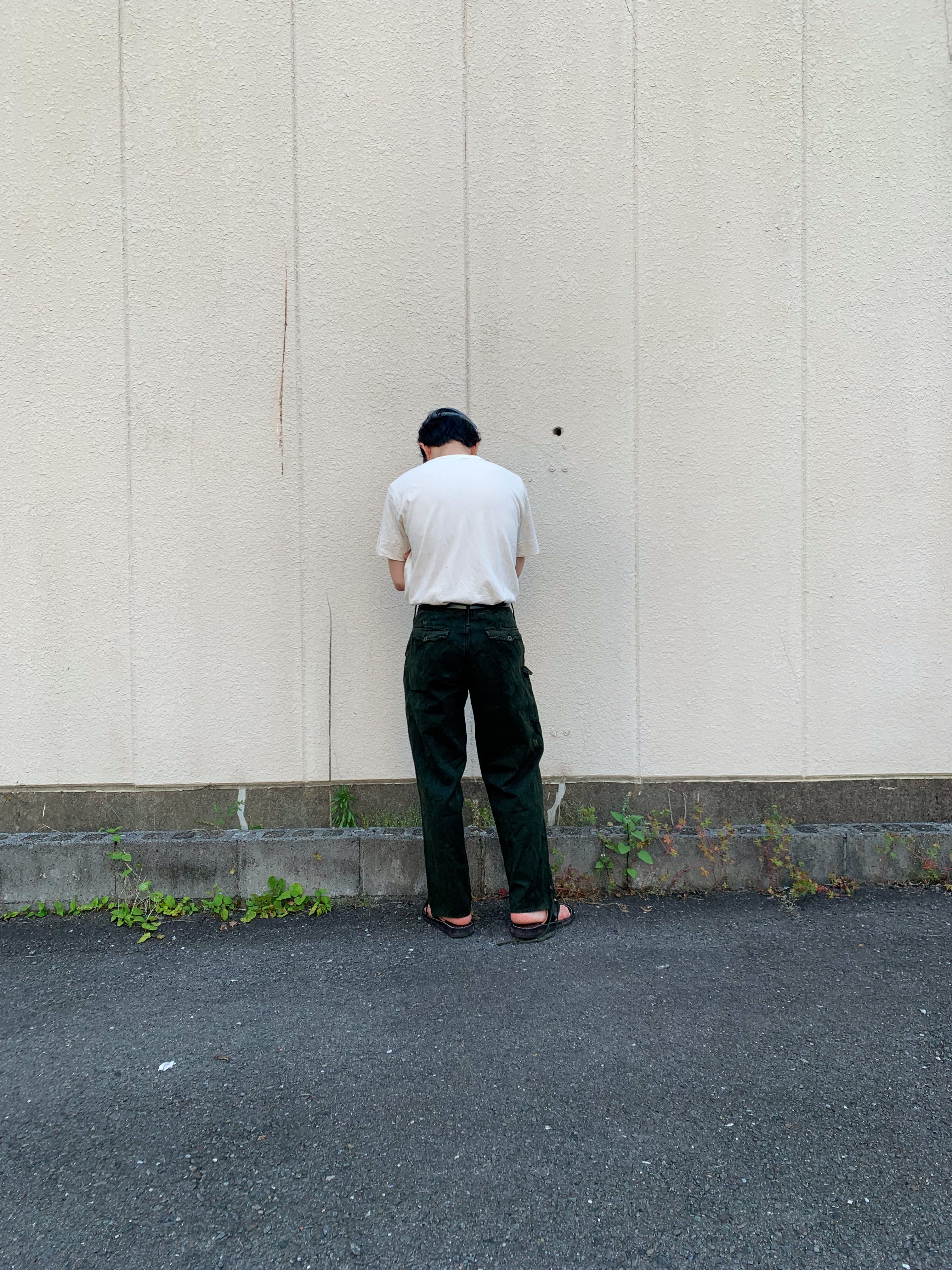 やはりカラーリングがこのパンツの一番の特徴でしょう。他の軍モノと比べてかなり緑が深く、個人的にはオリーブのオイルドコットンにかなり色味が似ているなと感じます。緑に黒を混ぜたような大変重厚感がある色味になっております。