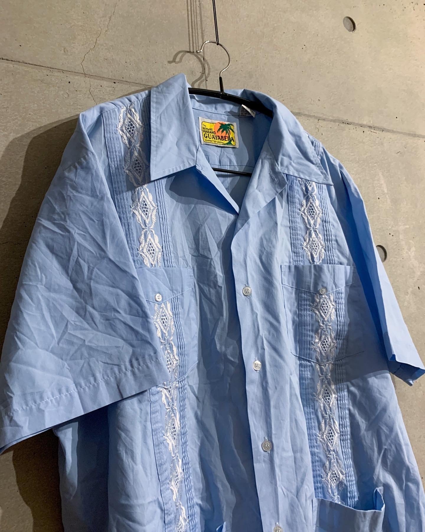 00's THE GENUINE HABAND GUAYABERA Cuban Shirt Blue
