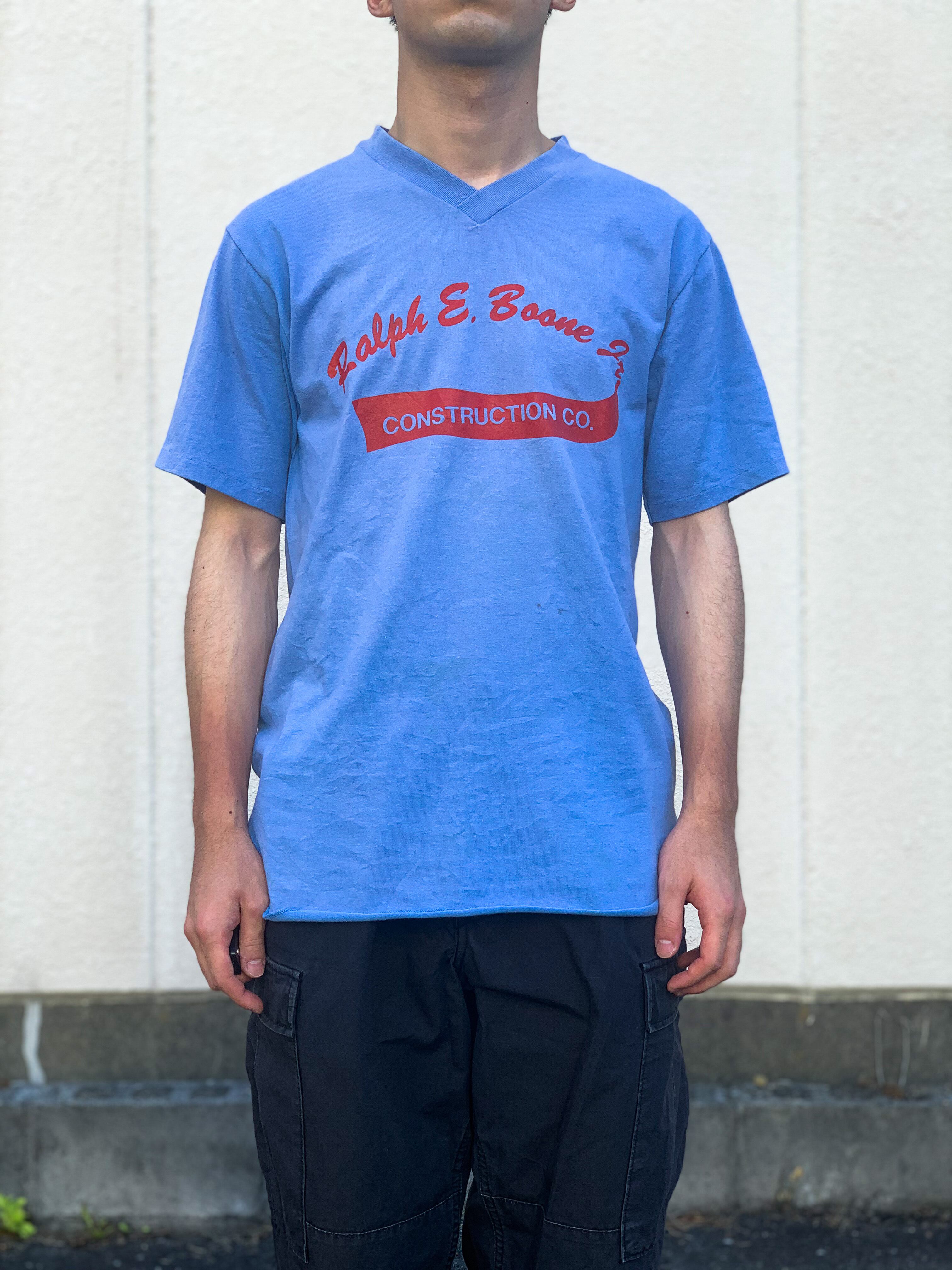 フロントには"Ralph E Boone Jr Construction co."、バックには"GAFF 28"のプリント。Construction coは建築会社という意味なので、おそらくアメリカの企業Tの部類かと思います。ぱっと見はかなりスポーティな印象が強く、どこかのチームTかと思ったらまさかの企業Tというかなり面白いデザインかと思います。またバックプリントは、割れはさほど見られないのですが独特のシワ感がいい雰囲気を醸し出しています。