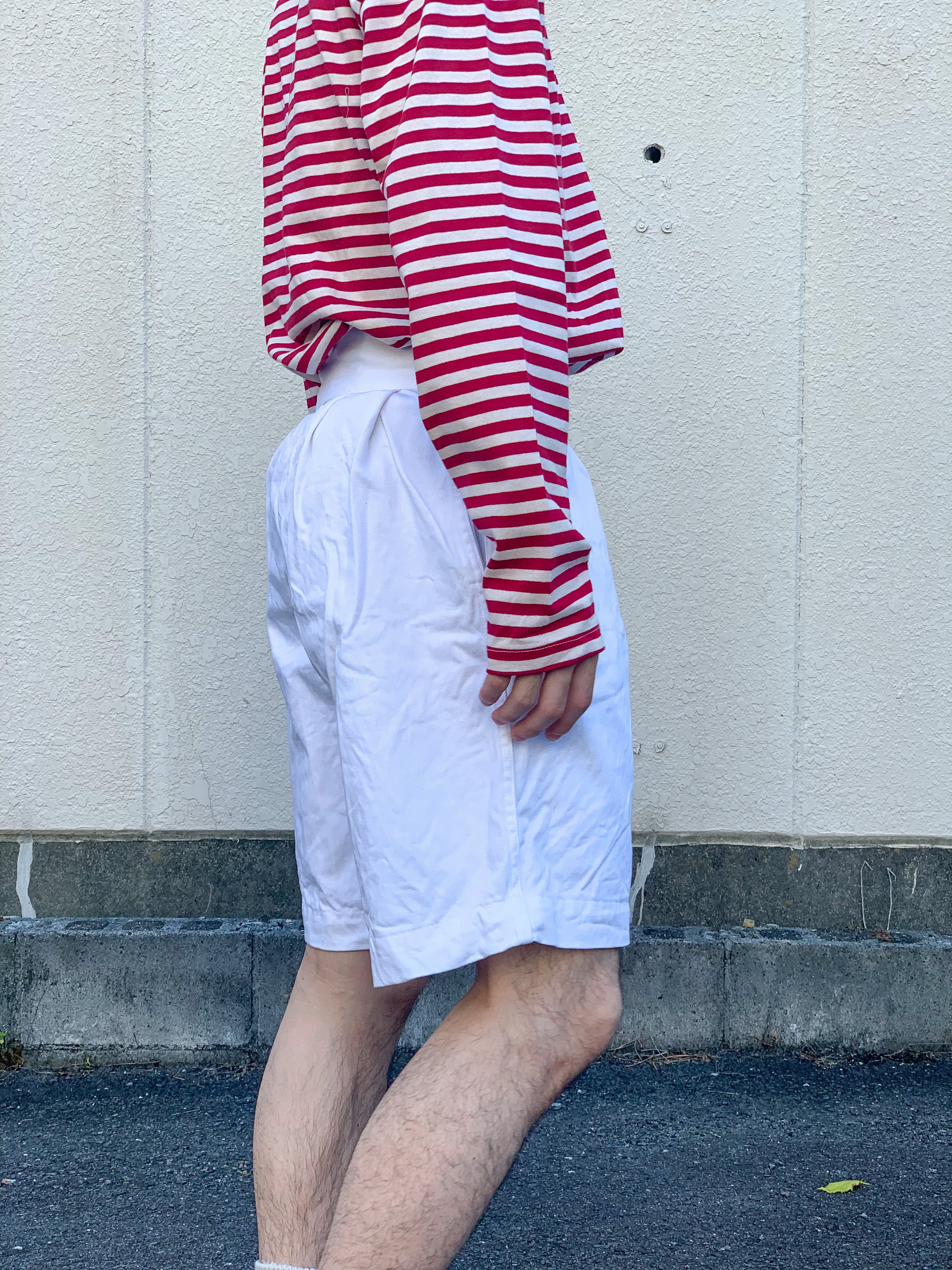 なんといっても1番の特徴はこのシルエット。かなり太めかつ末広がりな形で、男女問わず履ける一本です。丈は膝より少し上ぐらいで大変動きやすいため、ショーツを探していた方には是非おすすめしたいです。