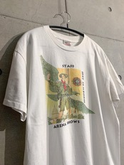 個人的に結構好きな雰囲気のグラフィックで、久しぶりに古着のTシャツで私物にしようか本気で迷った一着です。