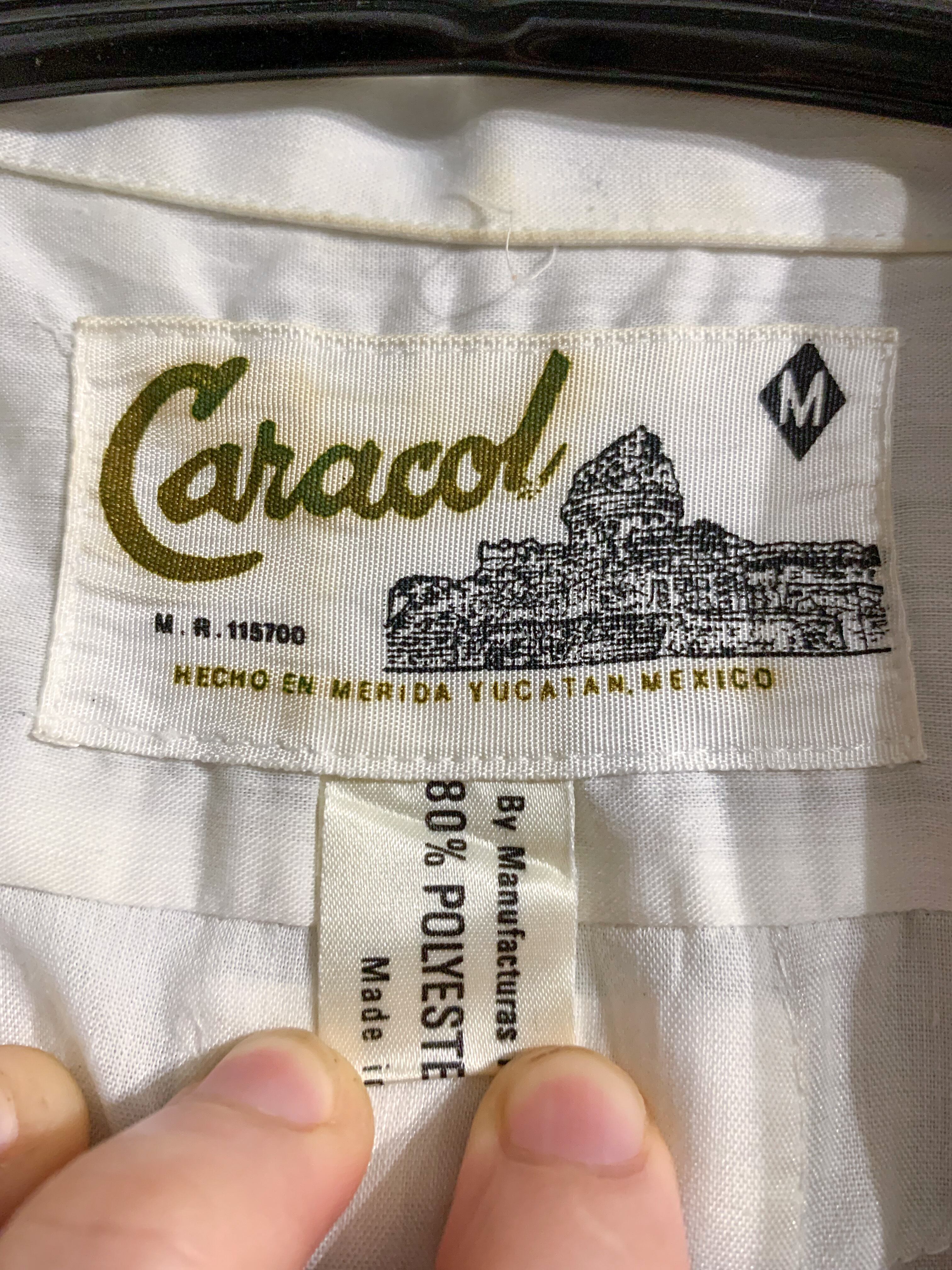 この夏のシーズンでキューバシャツを厚めに入荷したからこそわかってきたのですが、タグに中米の遺跡が描かれているものが多い気がします。今回のものはカラコル遺跡というマヤ文明の遺跡になります。ぱっと見の印象はアンコールワットのような雰囲気を感じます。