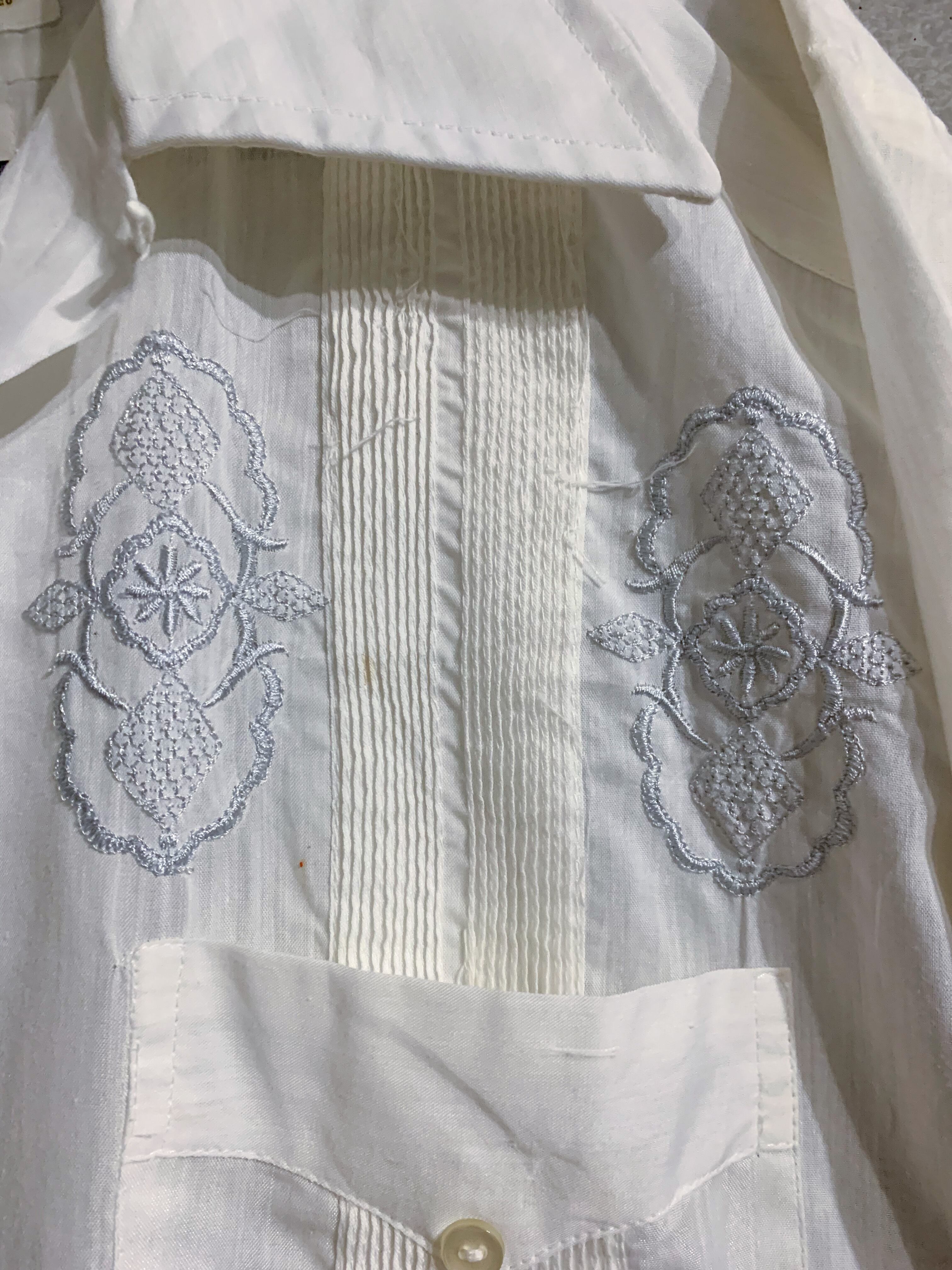 キューバシャツというとかなり多くのカラバリがあることでも有名ですが、白の個体は実はあまりなかったりします。今回のものは白+長袖という結構レアな個体かと思います。