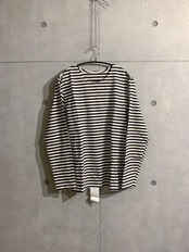 こういったミリタリーのマリン系のボーダーというとボートネックという首の形が水平なものが多いのですが、こちらは一般的なクルーネックタイプなので、より合わせやすいかと思います。