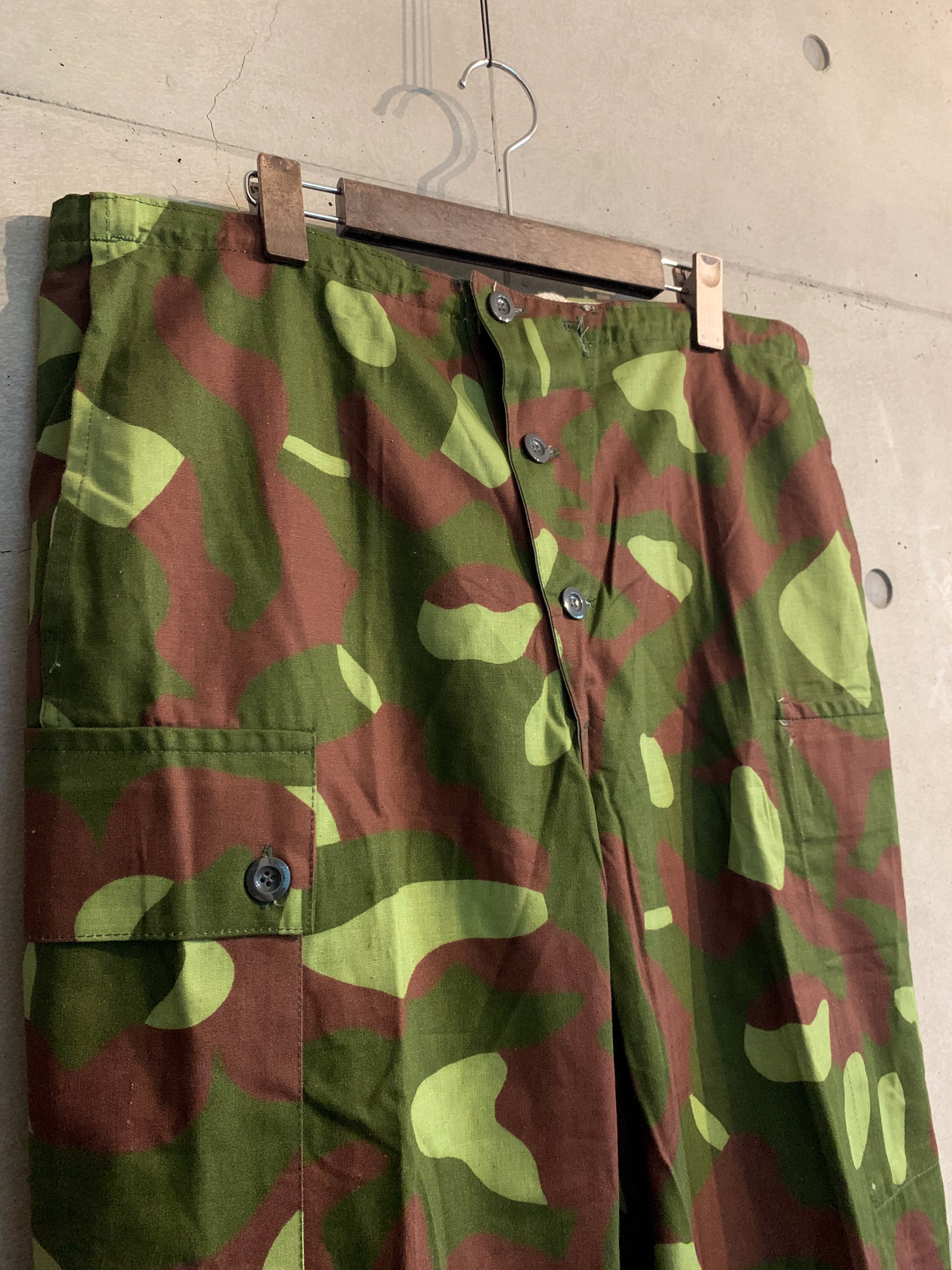 唯一無二のキューカンバーカモとスノーカモのリバーシブル仕様という大変面白いディテールを持ったフィンランド軍のM-62パンツ。大変おすすめのユーロミリタリーなので、お早めに是非。
