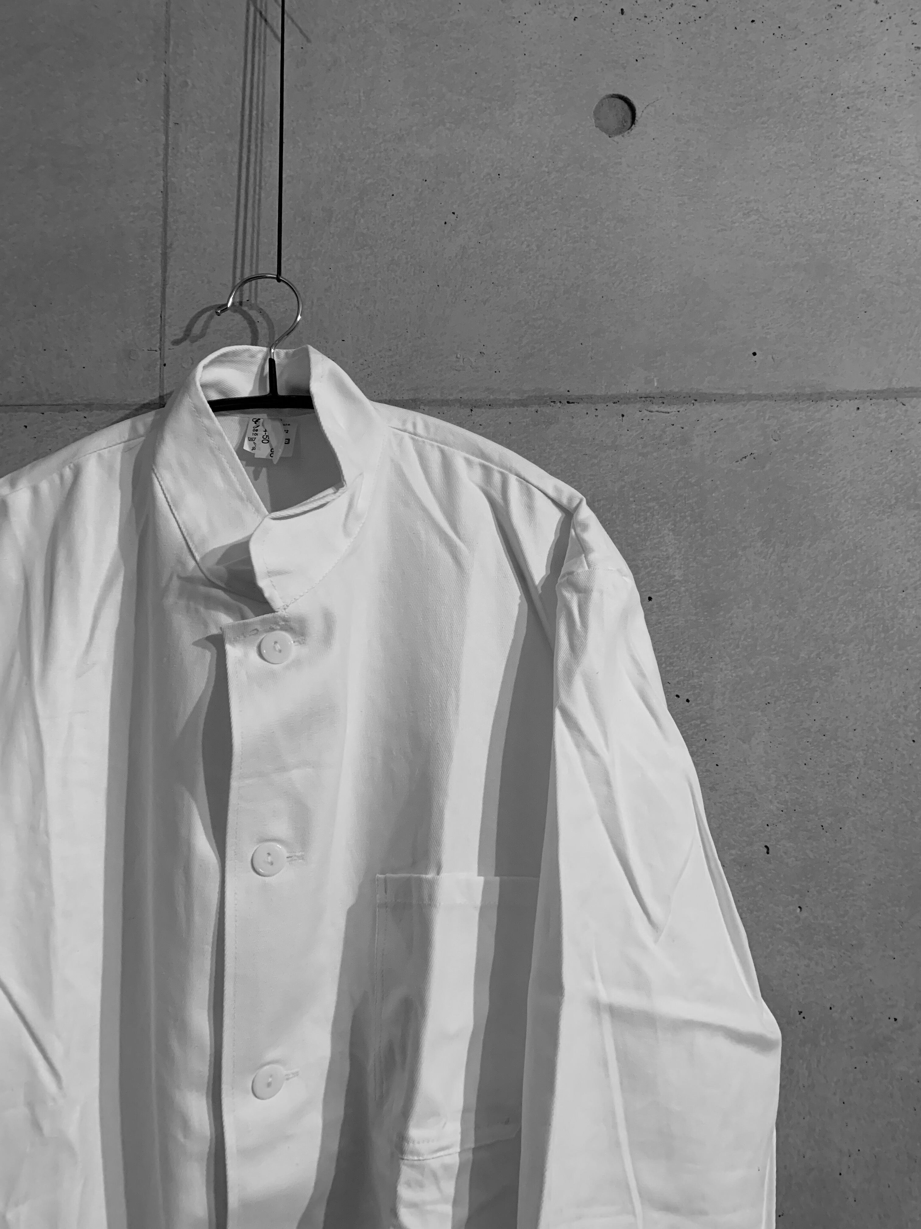 この辺りを見るとかなりコックジャケットと似たものを感じますが、ただコックジャケットはダブルブレストかつ小さめのものが多いので、今回は別物としてご紹介させてもらっています。