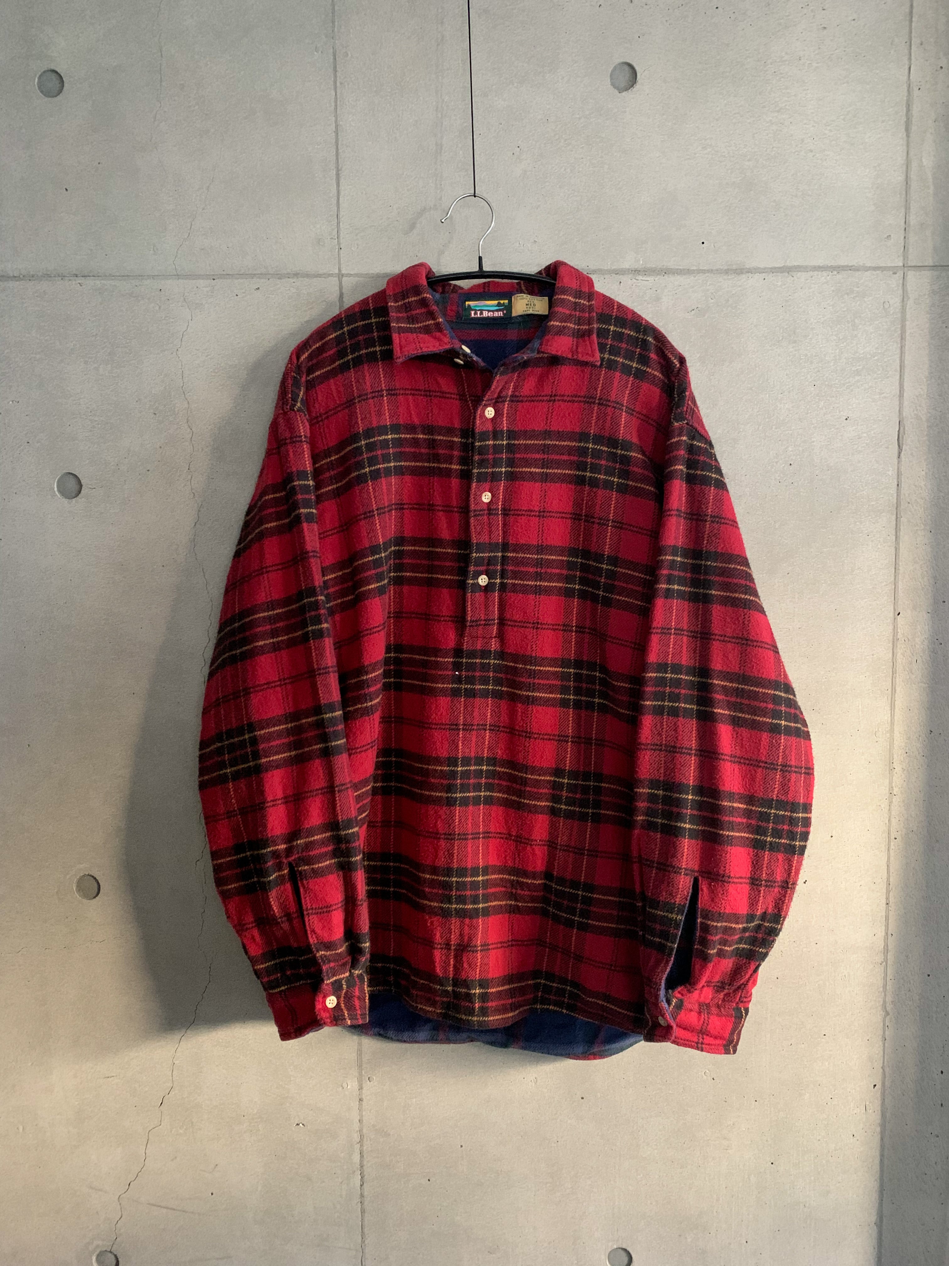 ただなんといっても特徴的なのはフルオーバーかつリバーシブル仕様であるという点。L.L.Beanのプルオーバーシャツという段階で結構珍しいと思うのですが、それにプラスしてまさかのリバーシブル仕様になっています。表面は赤がメインのタータンチェックで裏面は青がメインのタータンチェック、どちらも使い勝手がいい即戦力かと。