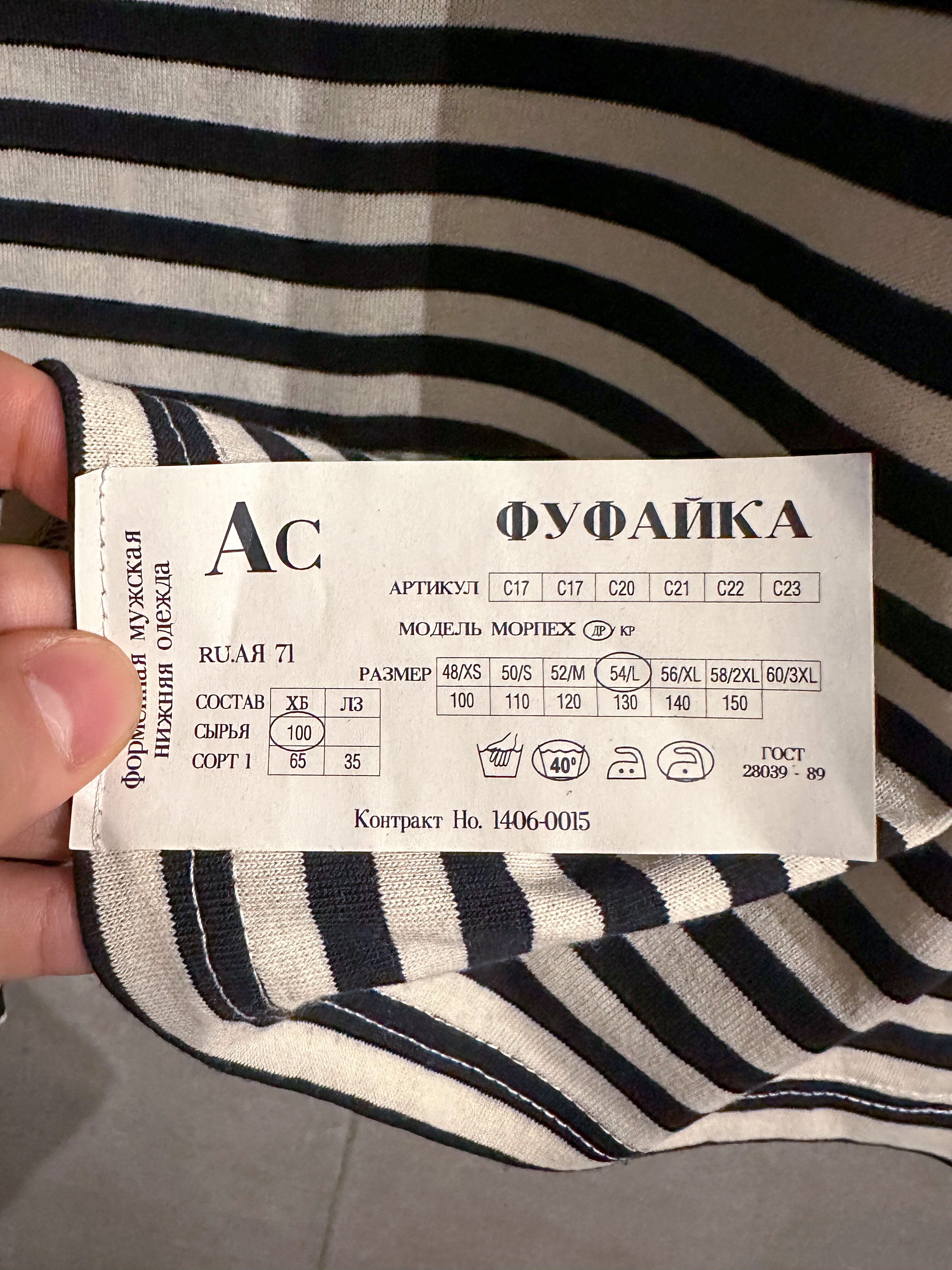サイズはLサイズ表記になっております。着画では結構着丈、袖丈が長めに見えますがデッドストックで一回も洗いをかけていないので、少しだけ縮みが出ると思います。