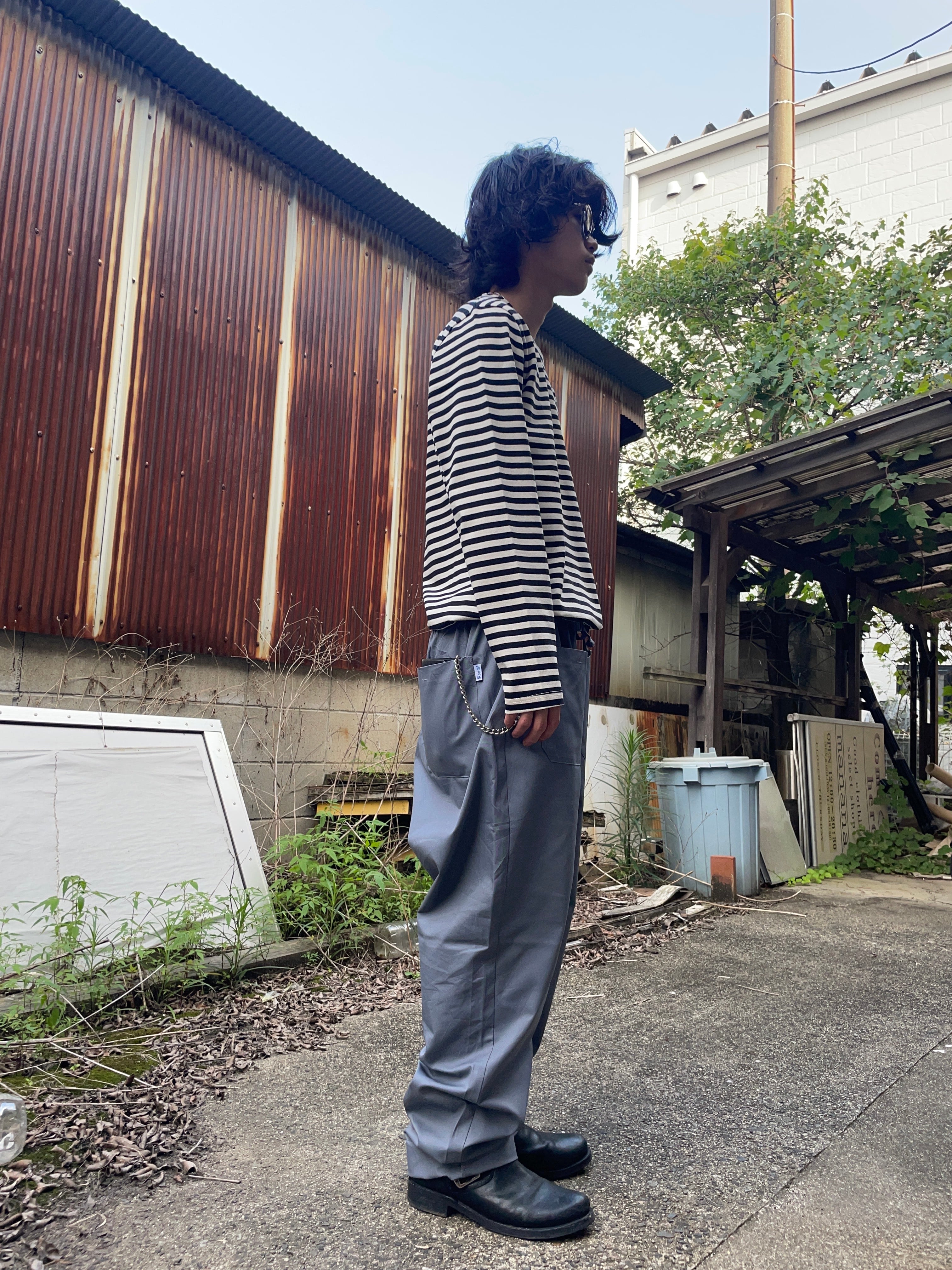 こういったミリタリーのマリン系のボーダーというとボートネックという首の形が水平なものが多いのですが、こちらは一般的なクルーネックタイプなので、より合わせやすいかと思います。