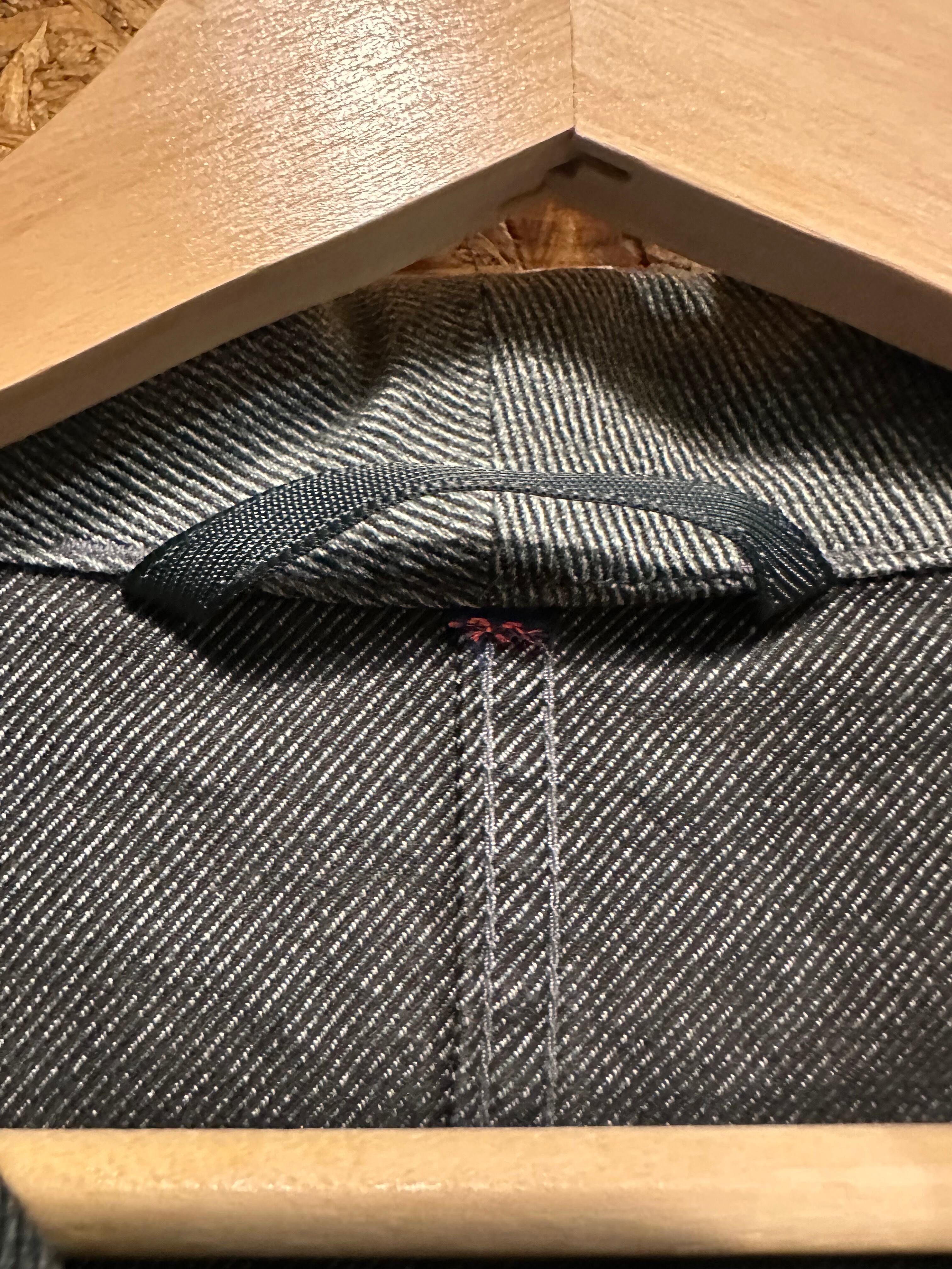 モスグリーンカラーのデニム生地はほぼスイス軍のアイテムでしか見られないもので、青と緑の中間にあるような独特な色味をしています。