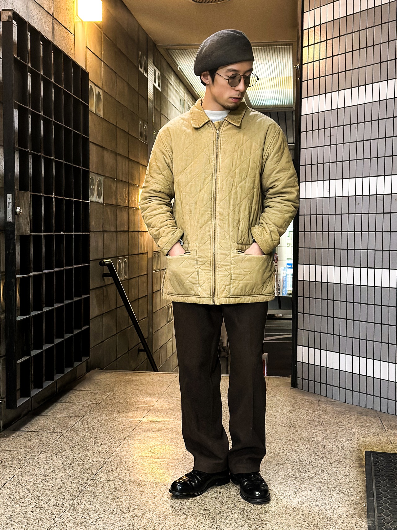 ヨーロッパ製のコーデュロイキルティングジャケット。