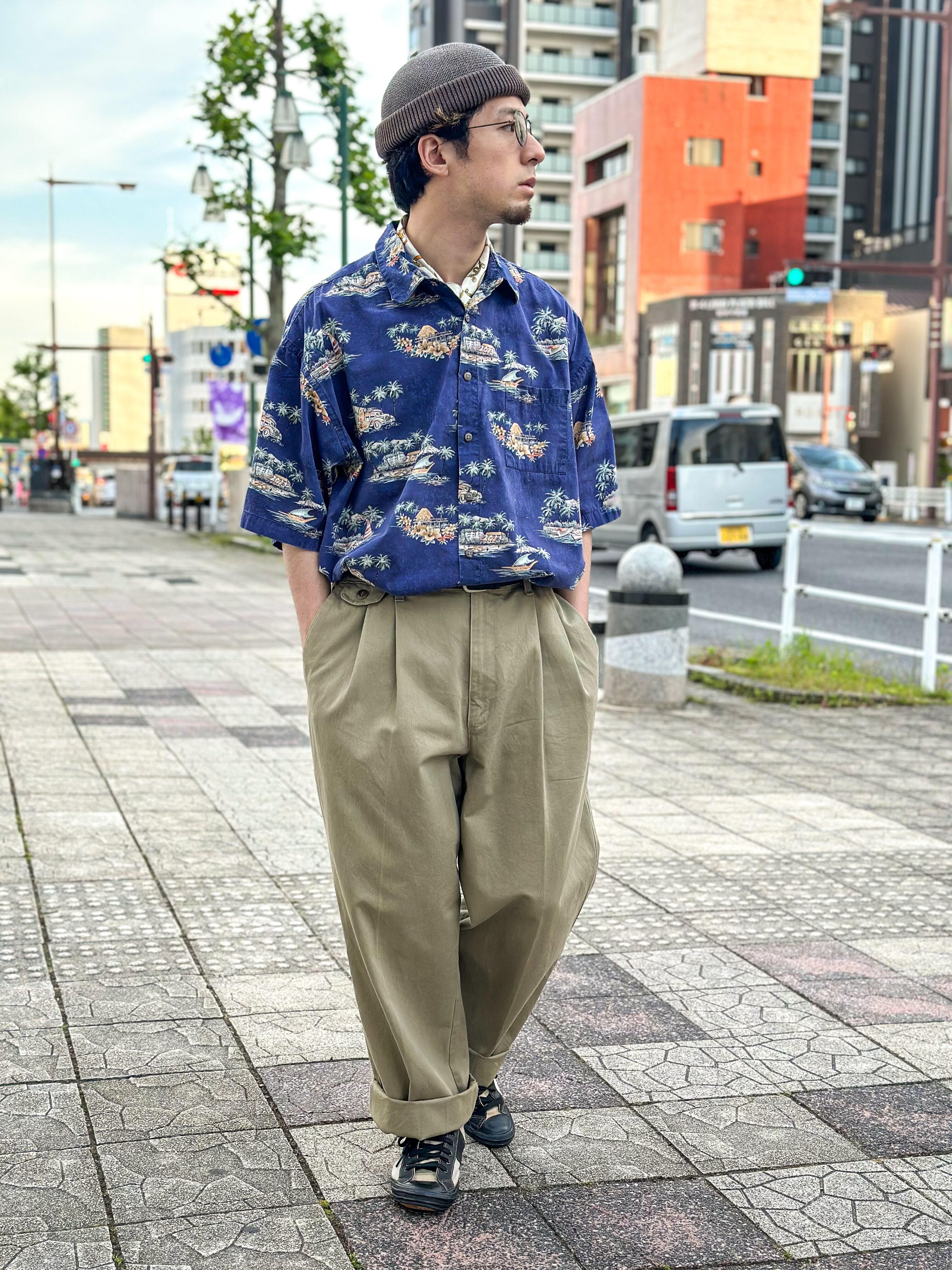 そしてフロントには2タック。個人的に2タックが入っていて腰回りにゆとりがあるパンツが大好きで、当店にあるパンツのほとんどが2タックのものになります。見た目の面でも動きやすさの面でも最高なシルエットなので、是非一度お試しいただきたいです。