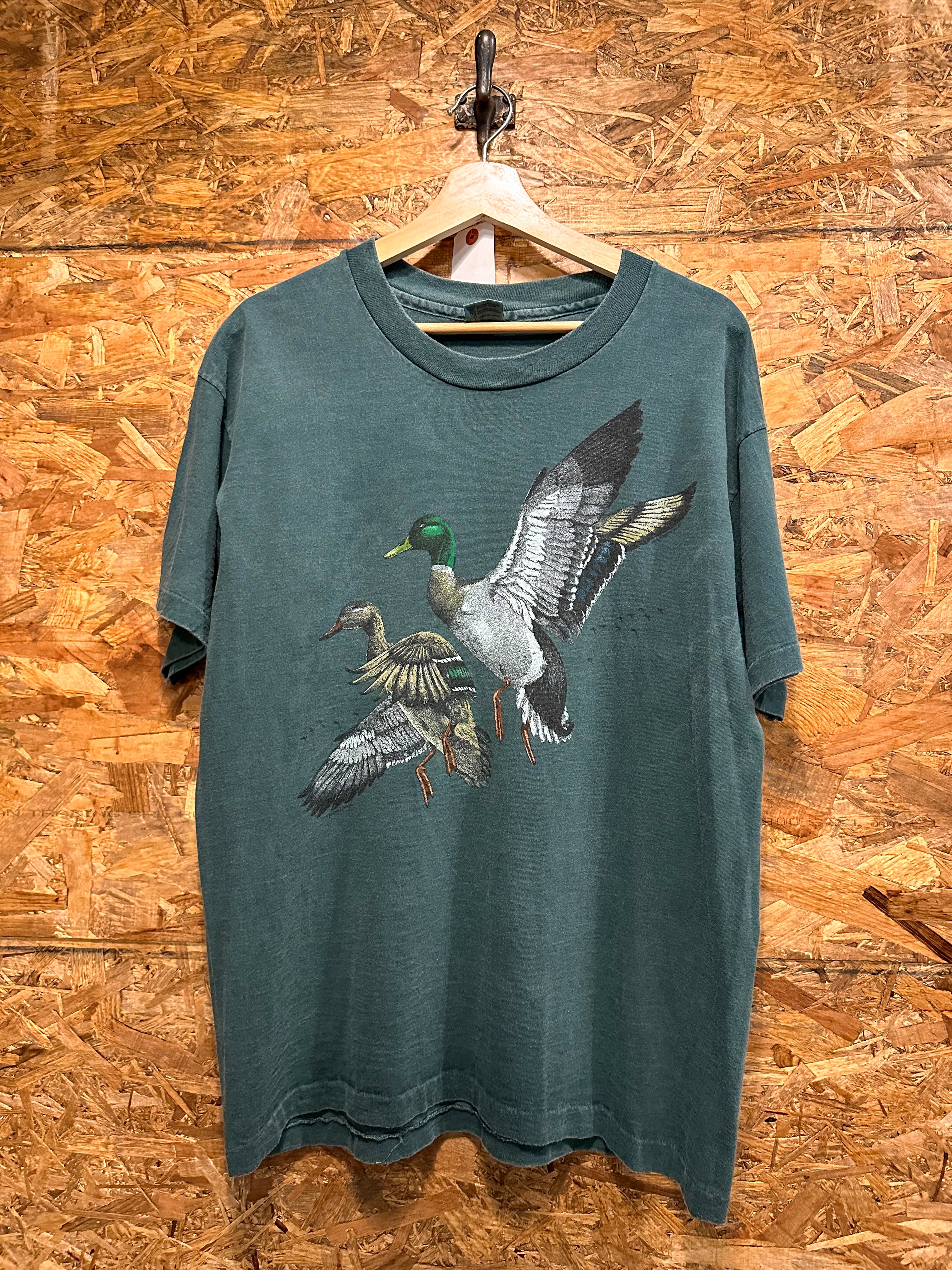 グラフィックは雌雄のカモ。オスが派手な羽色の方で、メスが地味な方。豆知識ですが、オスのカモは繁殖期を過ぎるとメスと同じ様な地味な羽色になるそうです。
