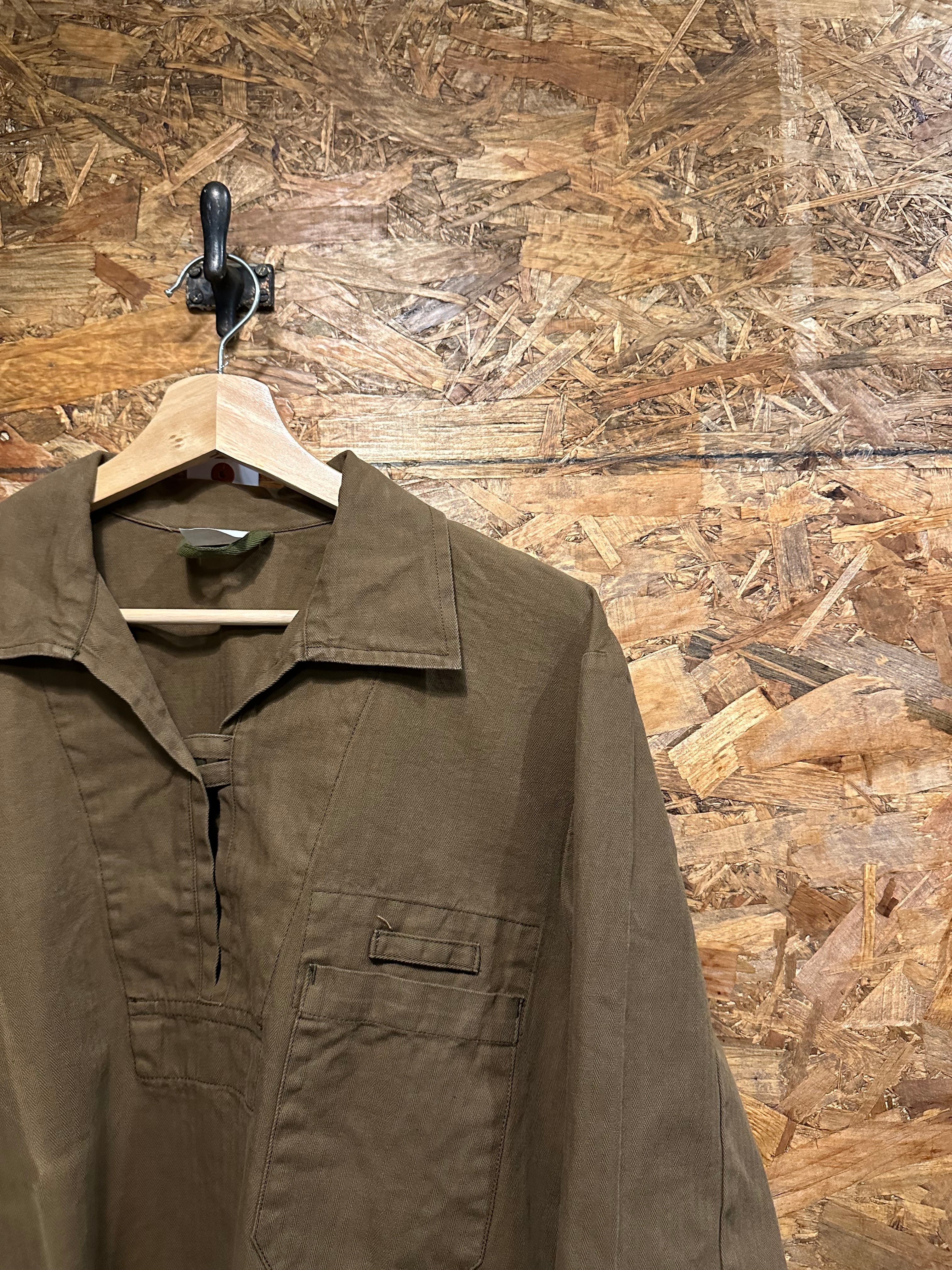 胸元にペンを挿す用のループがついている為、恐らく前線の兵士用ではなく事務作業をしていた人向けのワークウェアかと。