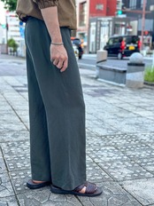 若干フレアがかかったシルエットも◎。元々レディースのパンツというのもあってかなり脚長効果がある形です。