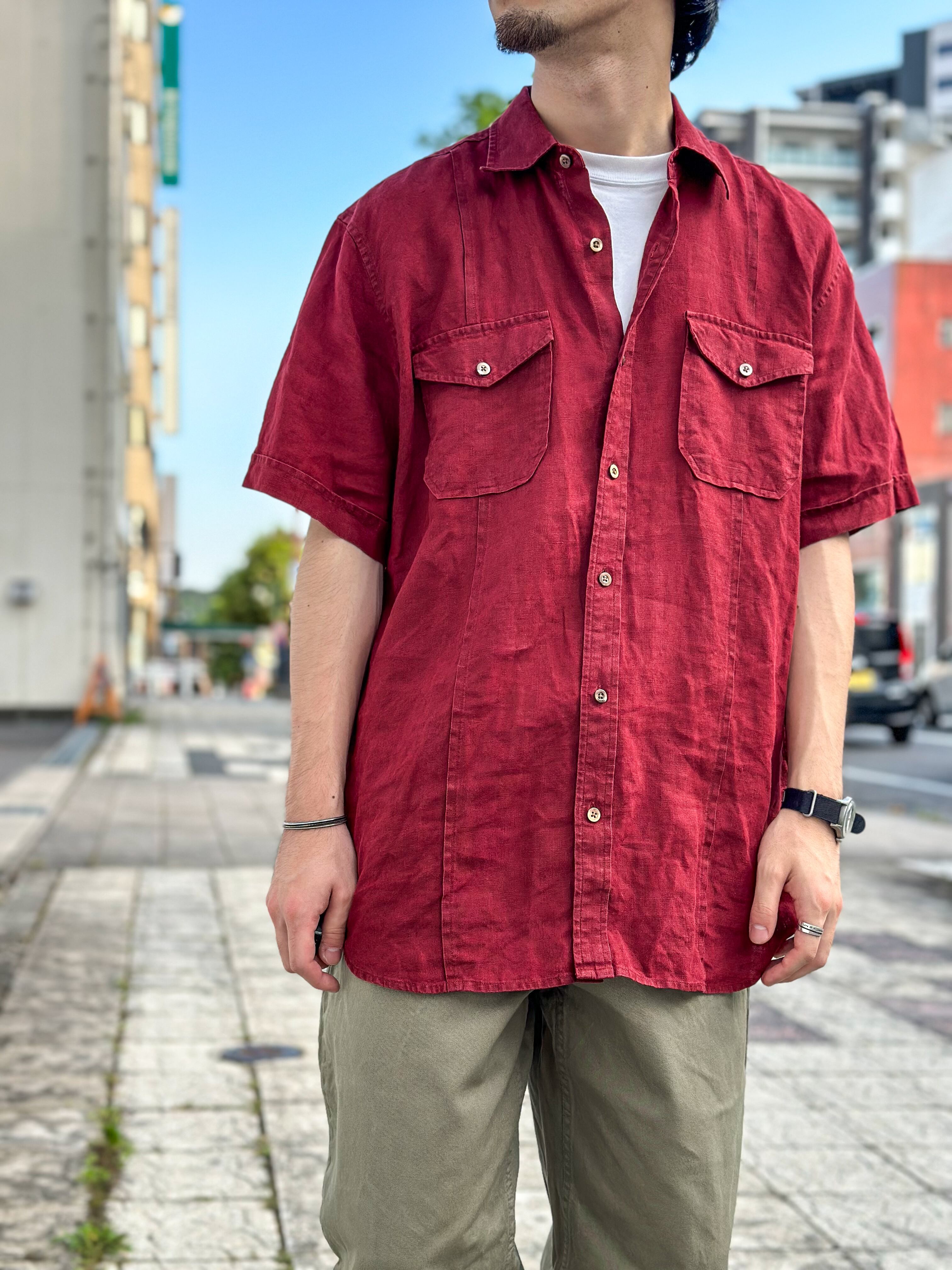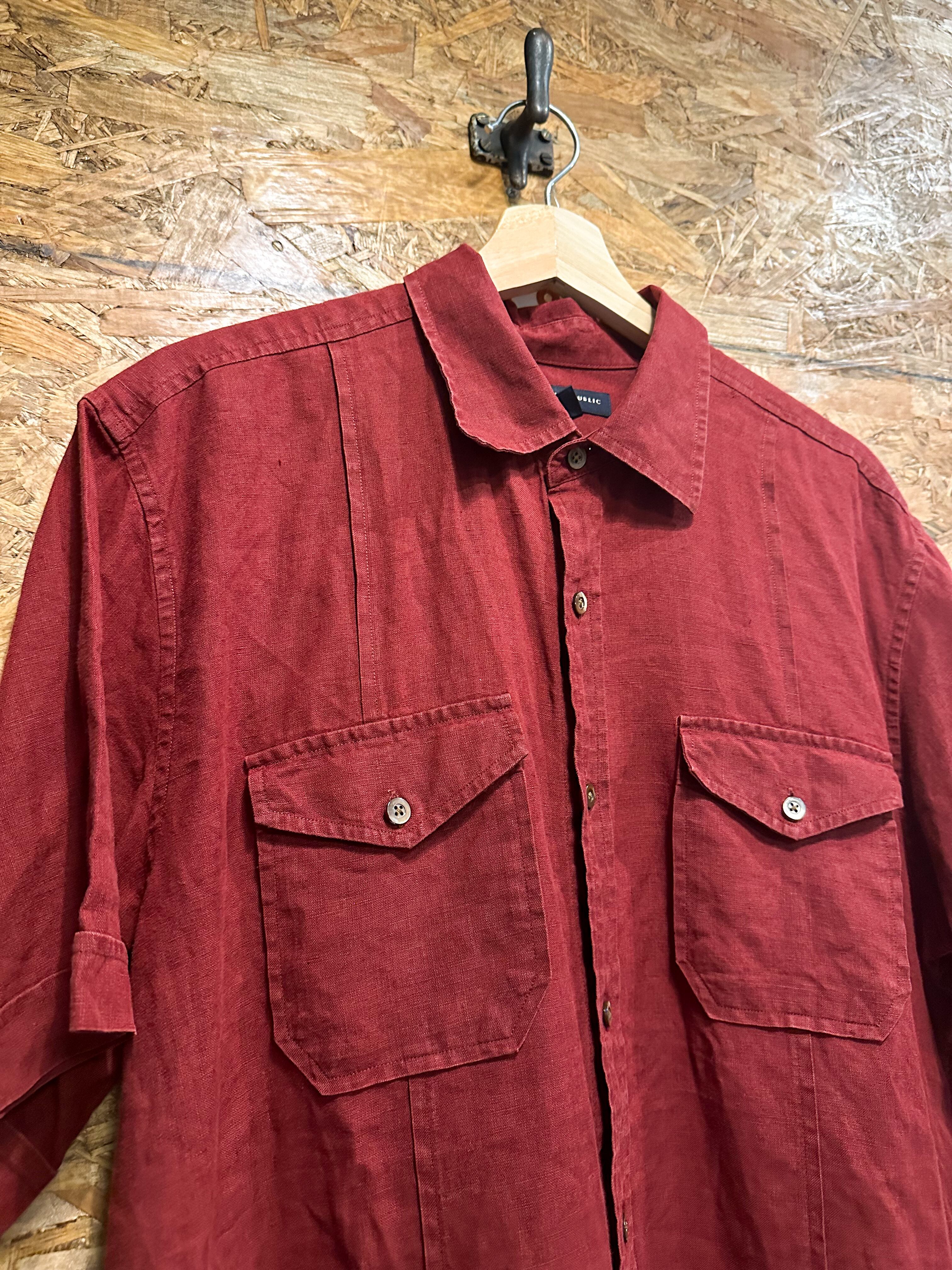 00's〜 BANANA REPUBLIC Linen Shirt Size L Red