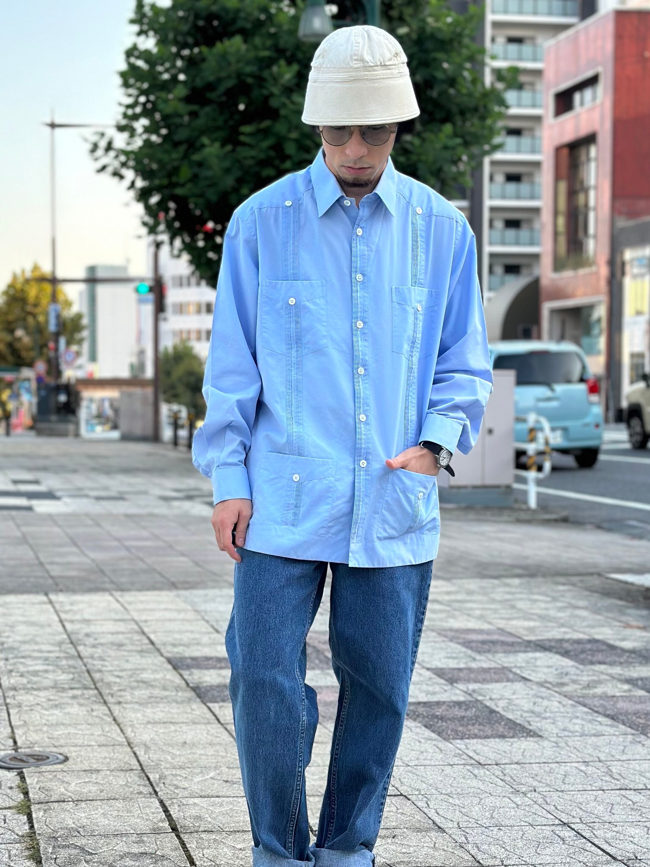 一般的なキューバシャツにはギャザーと刺繍が施されておりますがこちらの個体はギャザーのみなので、よりシンプルで綺麗めに合わせたい方にはもってこいのデザインです。