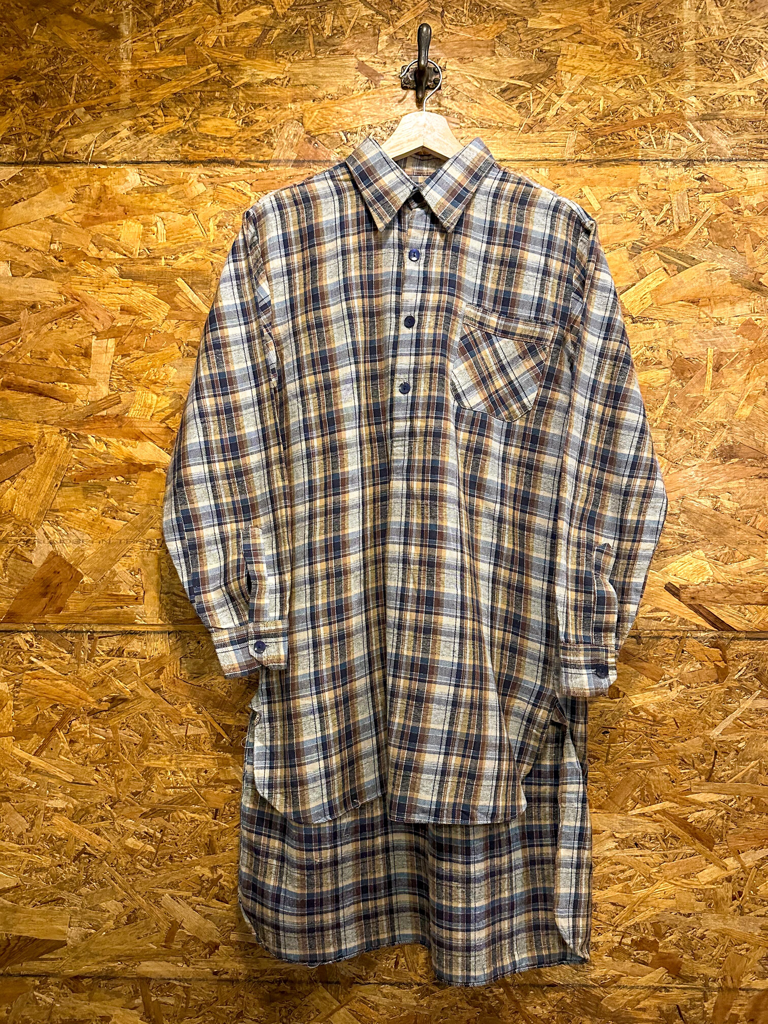 50〜60's Grandpa Shirt Brown×Blue made in France