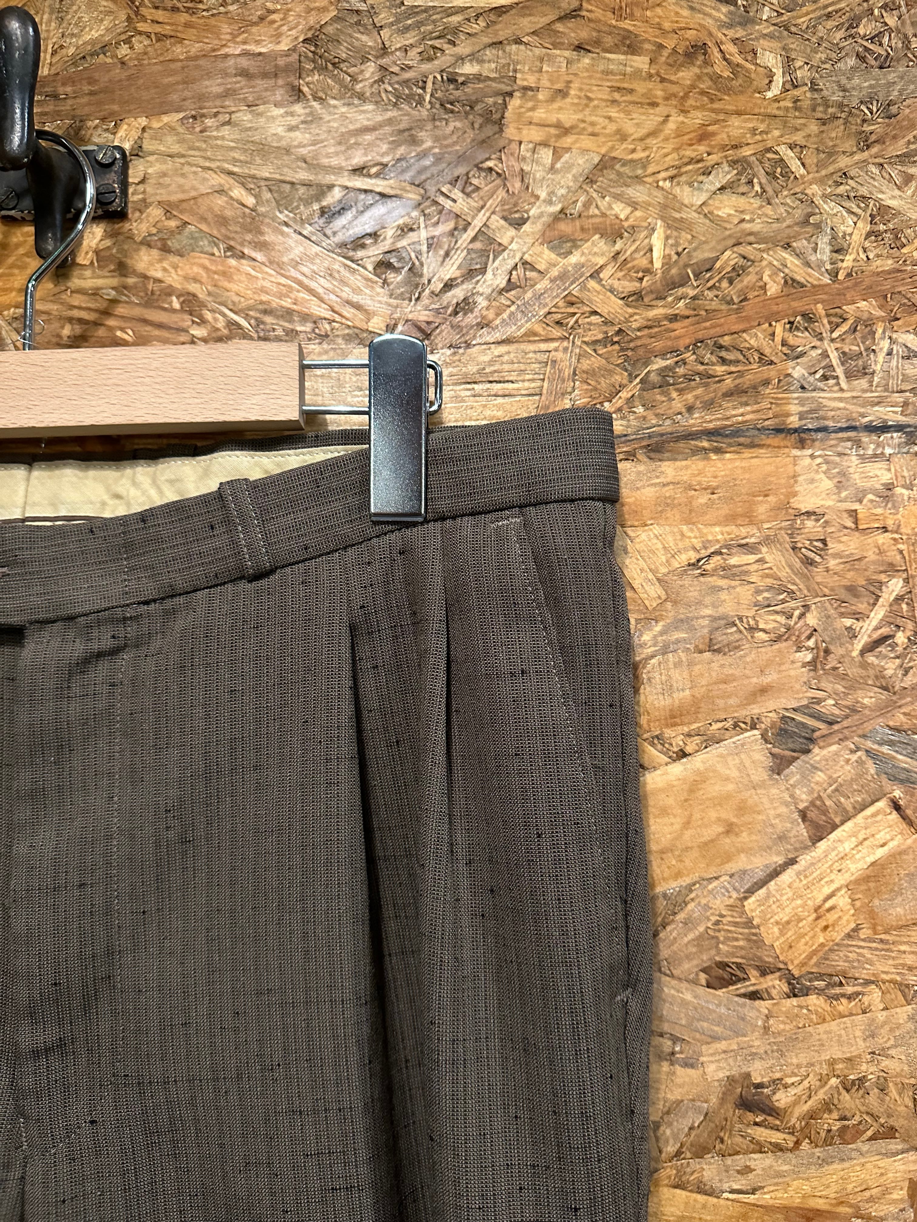 ポリレーヨン素材の生地なのですが、所々黒い糸のネップが見られ他のスラックスにはない独特な風合いです。