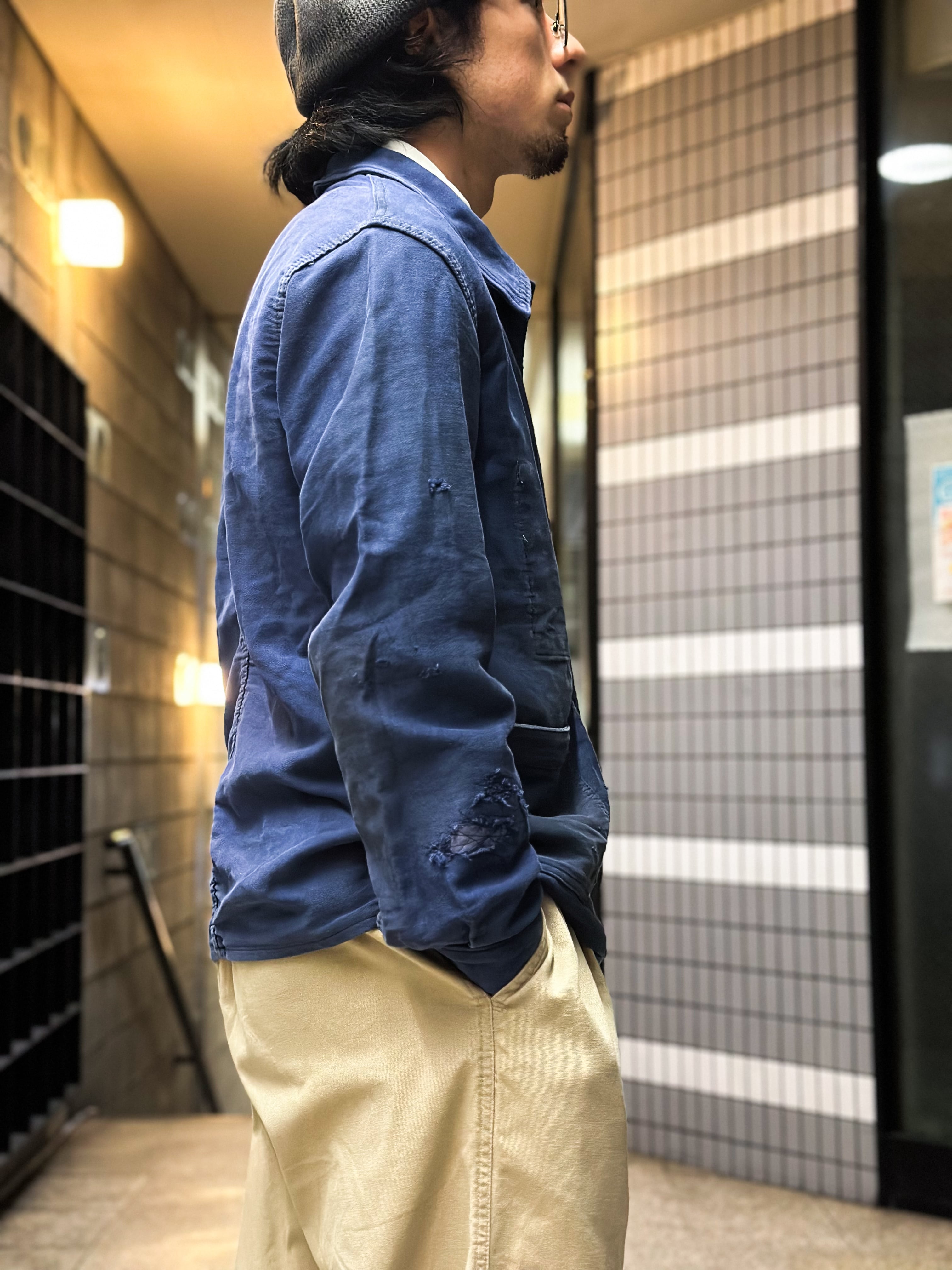 今回の個体の生地は、一般的なモールスキンよりも少し薄めの生地が使用されているので、今ぐらいの朝夕が少し冷え込むような季節にぴったりの1着となっております。
