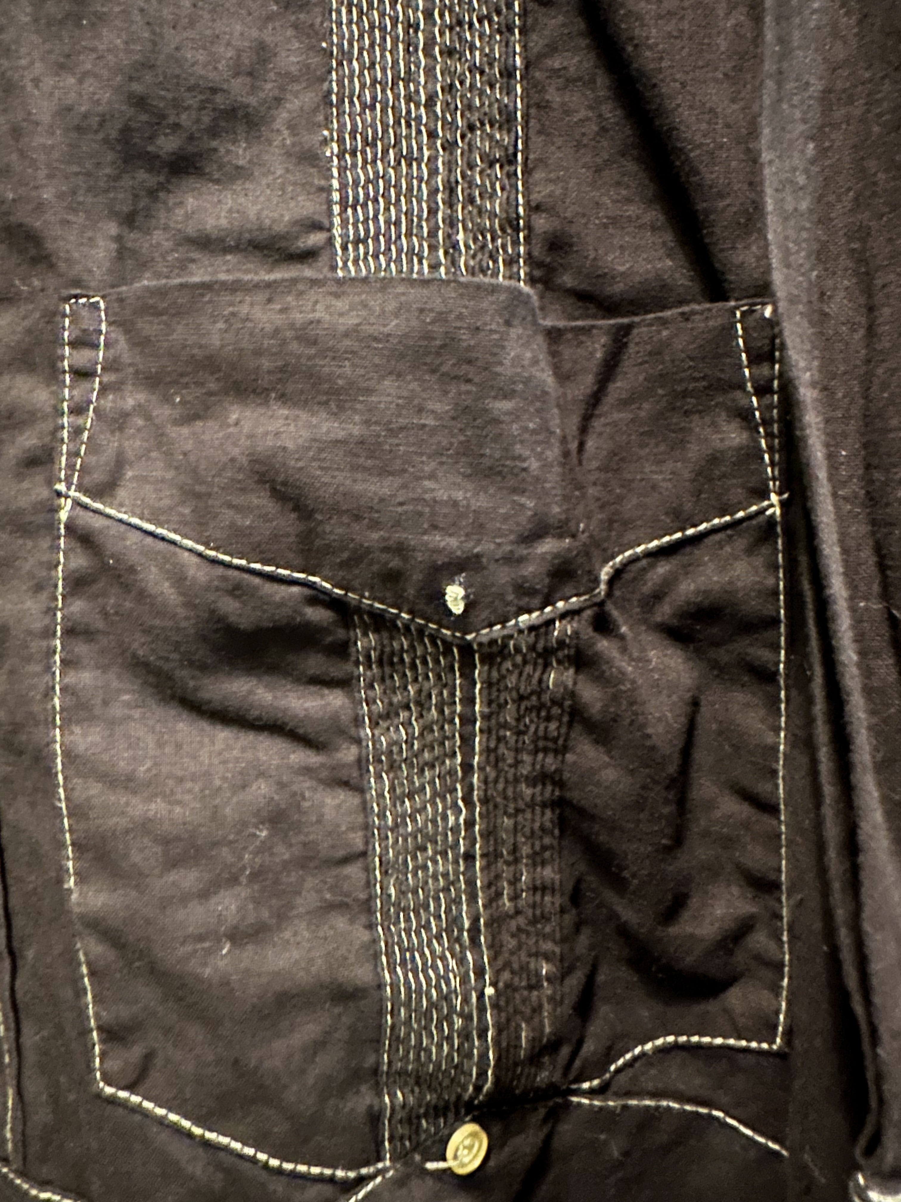 派手な色が多く敬遠してた方もいらっしゃるかもしらませんが、こちらの黒染めはどんなスタイリングにも馴染む万能シャツとなっております。