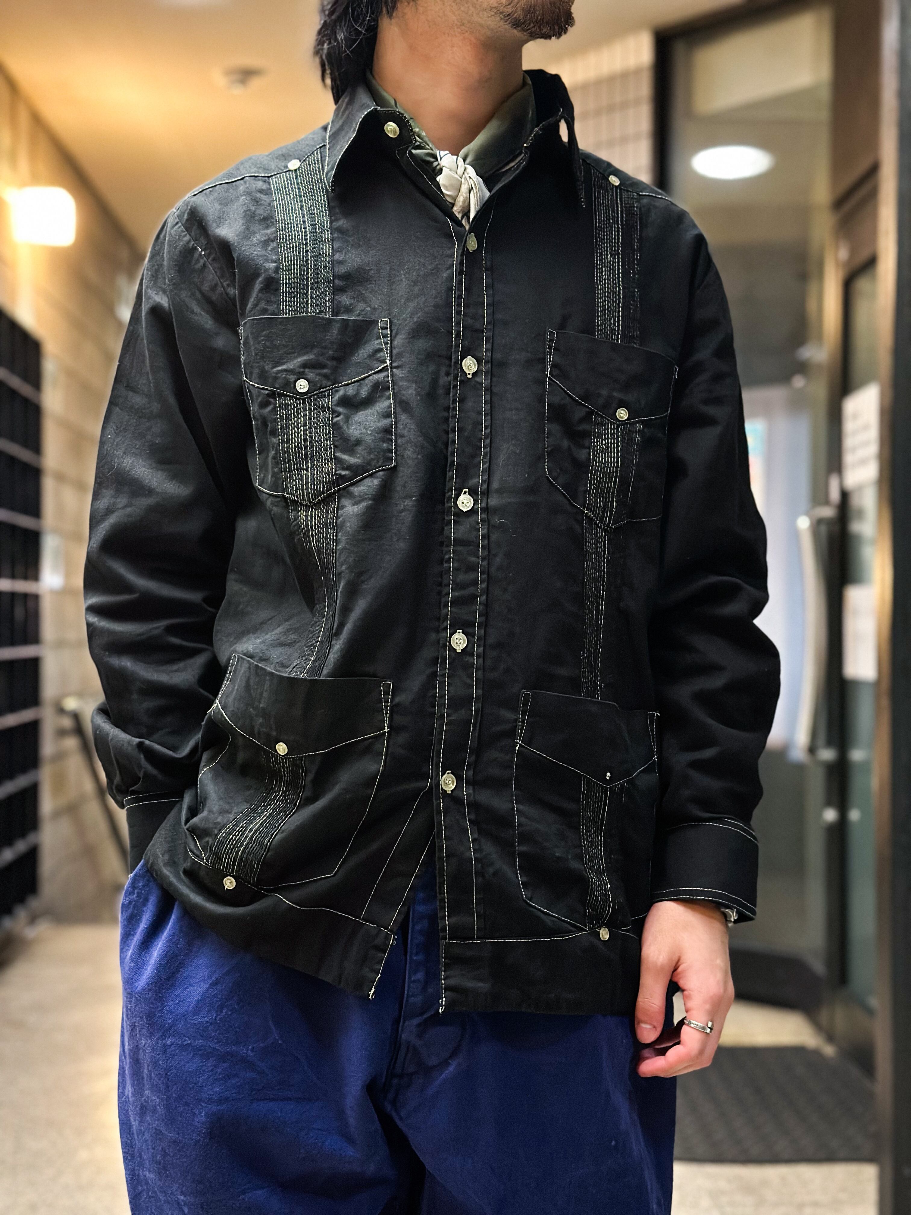 90〜00's MOJITO collection Cotton Linen Cuban Shirt Overdye Black