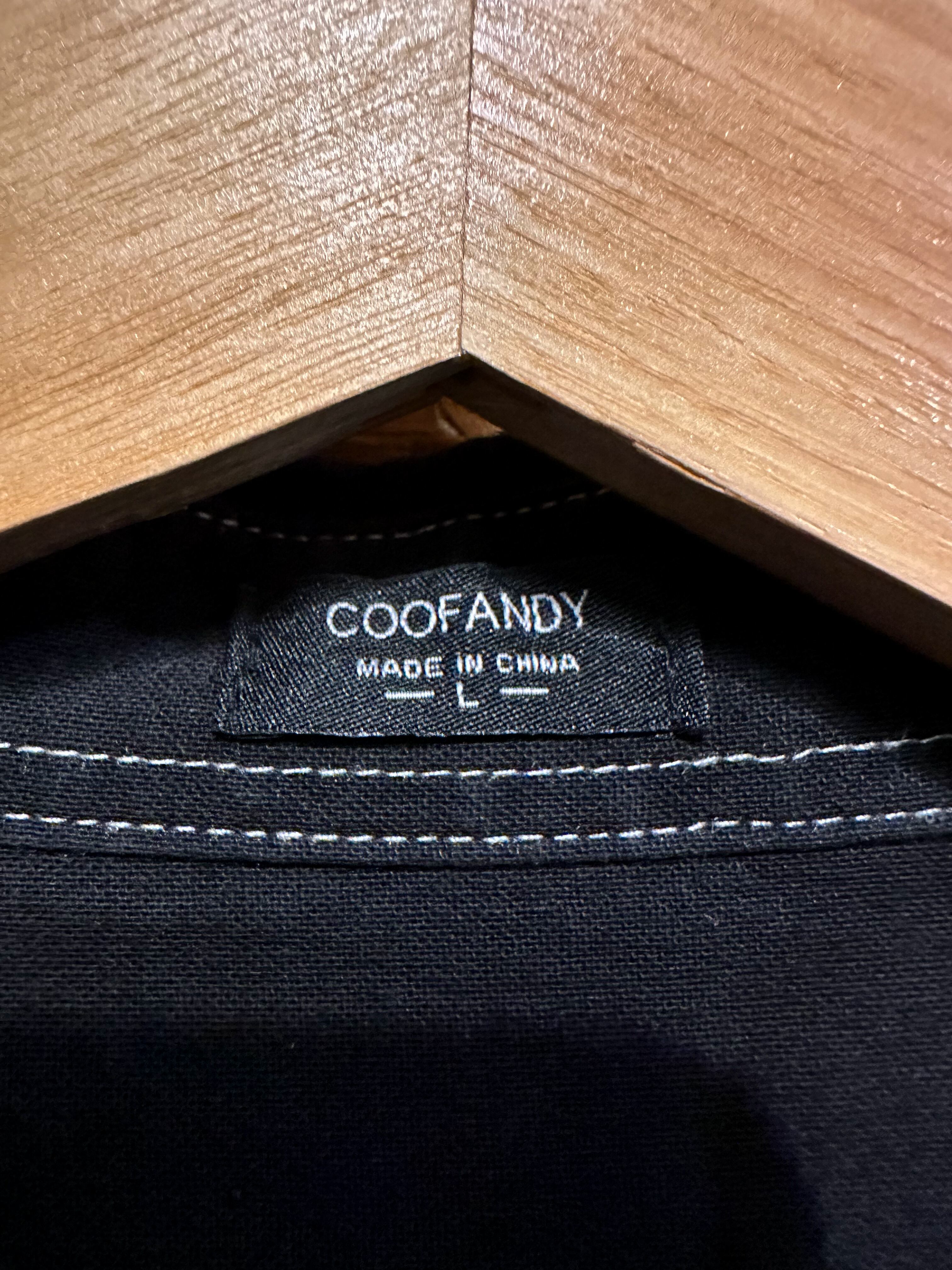 00's〜 COOFANDY Ramie Long Sleeve Cuban Shirt Overdye Black