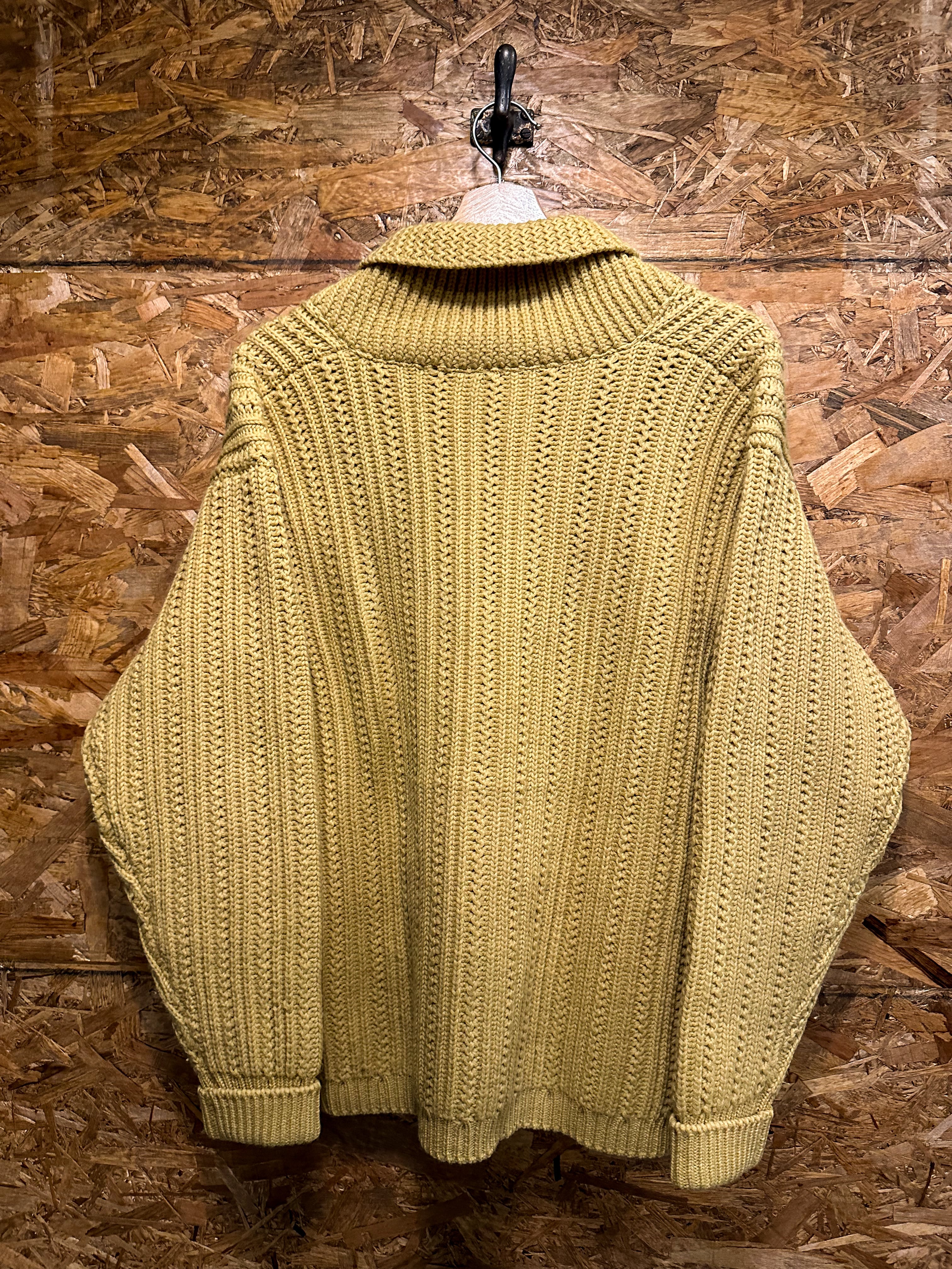 こう言ったローゲージセーターはクルーネックやタートルネックの物が多いですが、こちらはヘチマ襟とも呼ばれるショールカラー。